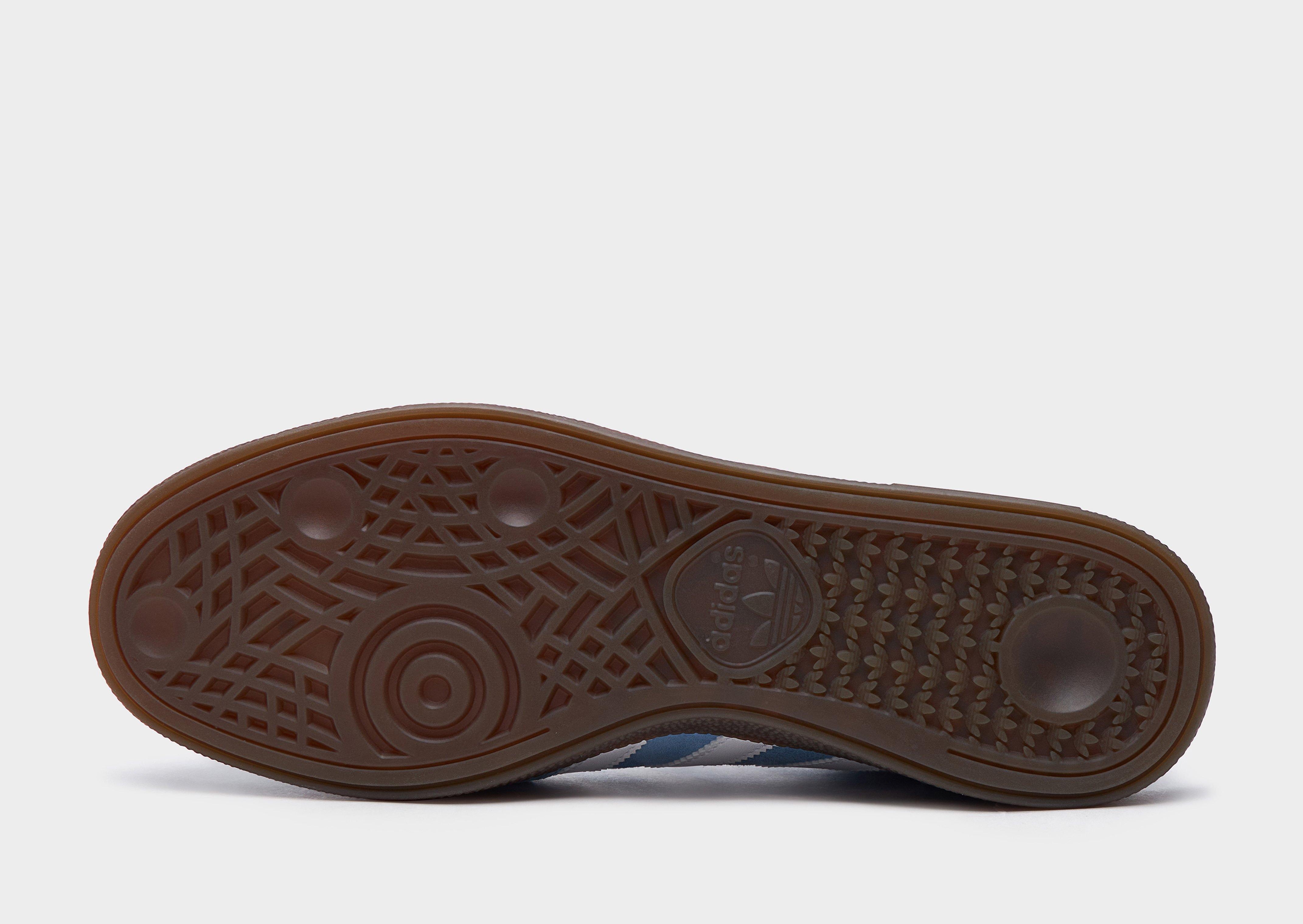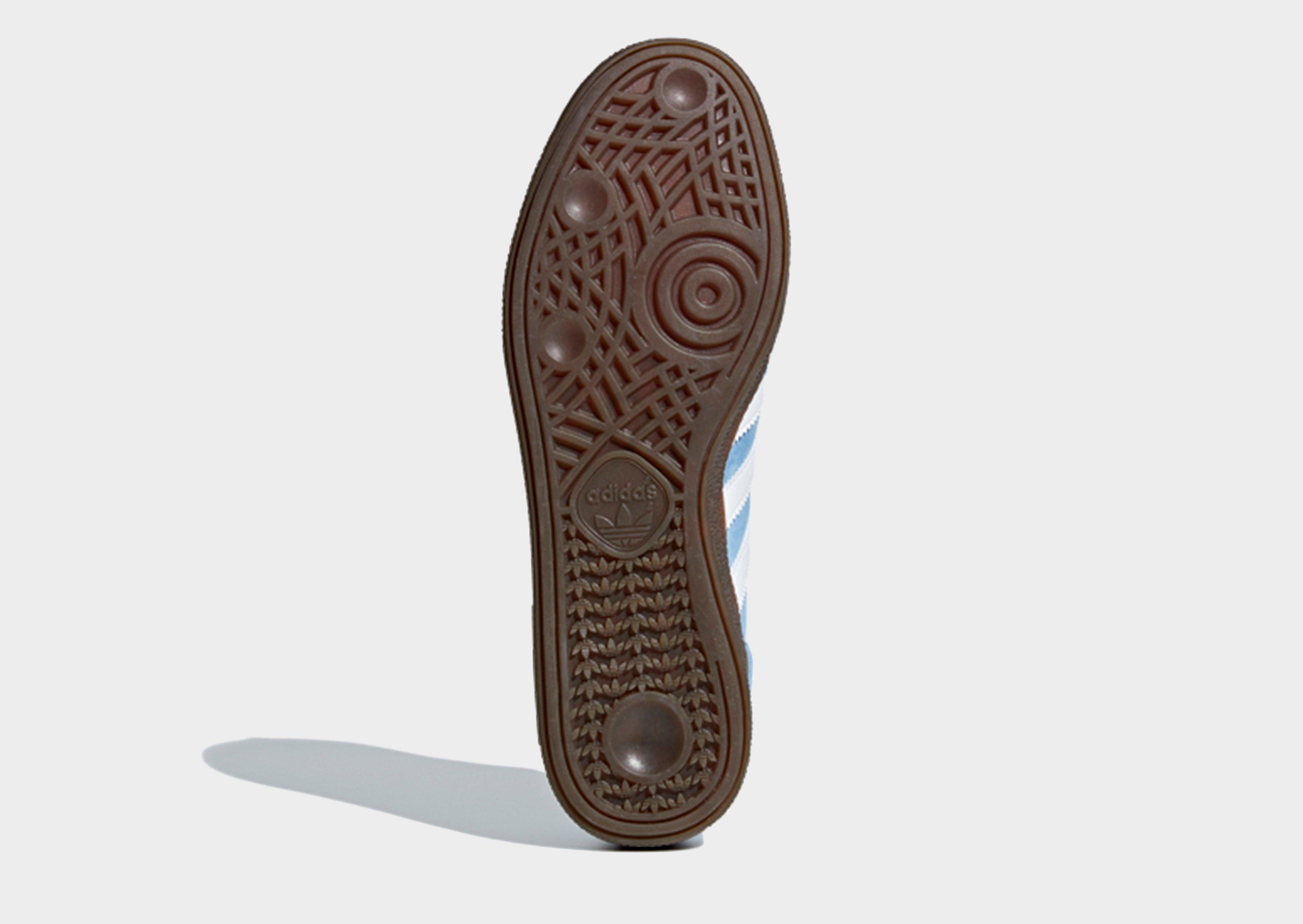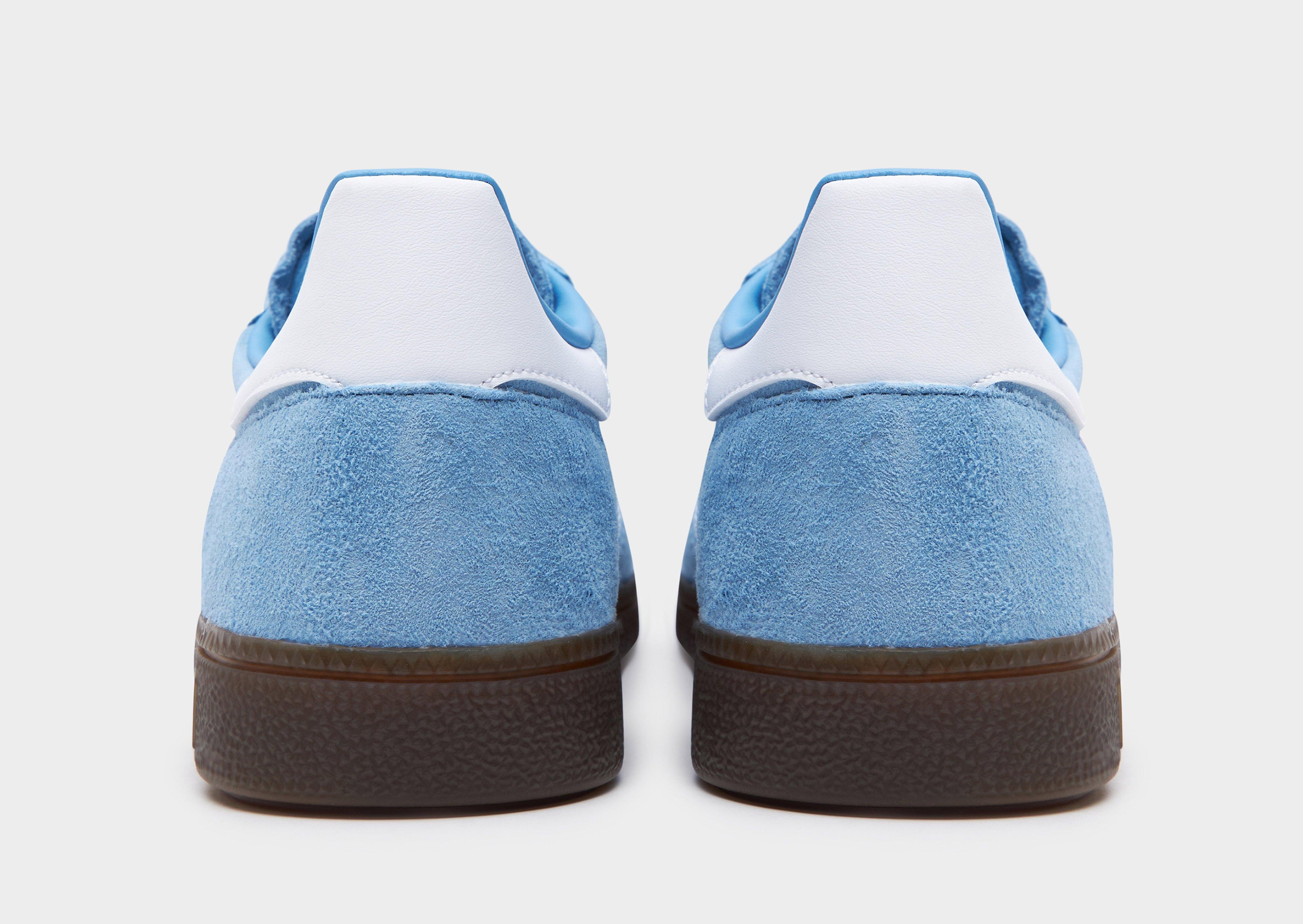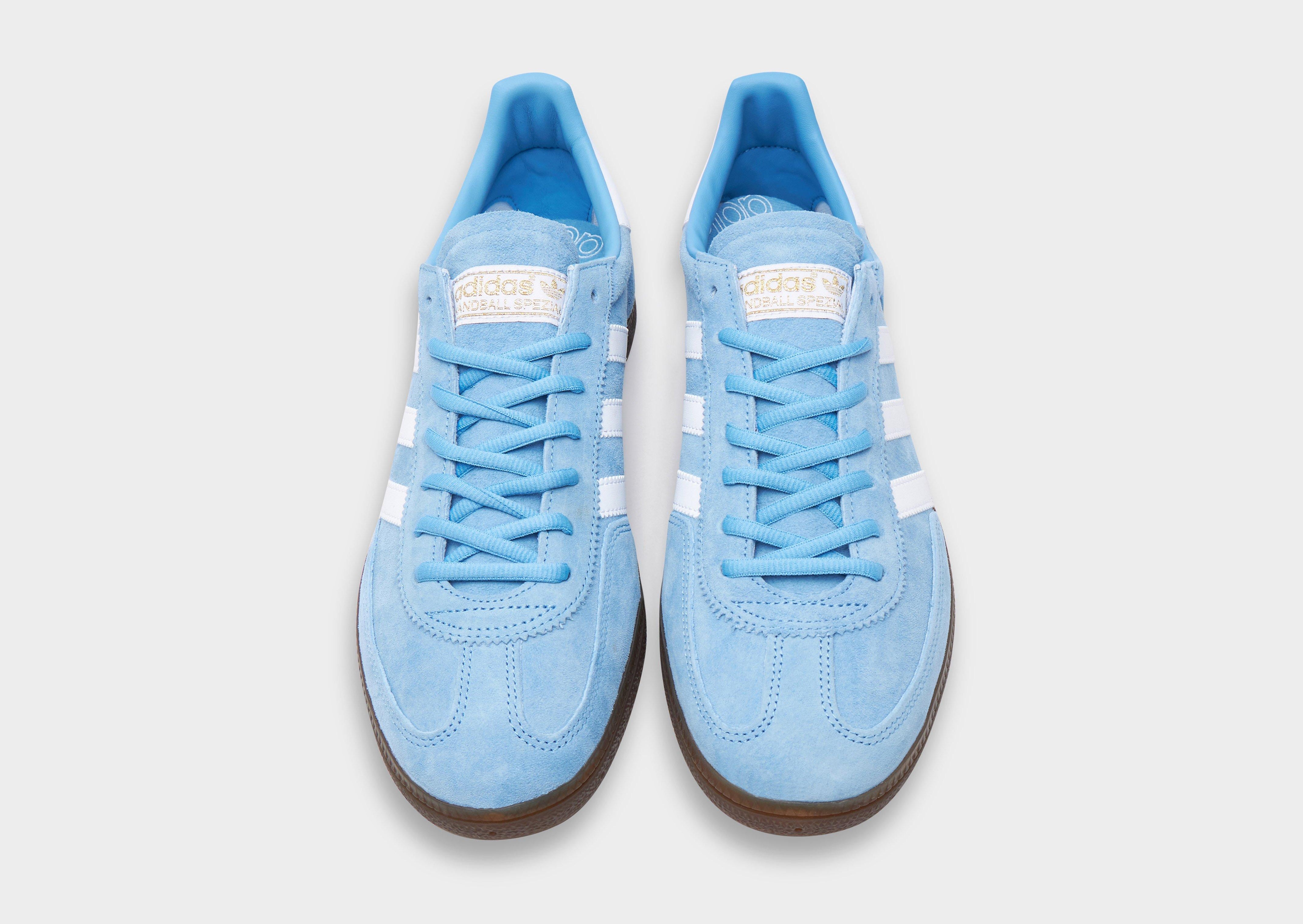Back from '79, these men's Handball Spezial trainers from adidas Originals stay true to the OG. In a Light Blue colourway, these low-profile sneakers have a premium nubuck upper with a tonal lace up fastening to lock you in. They're equipped with an Ortholite sockliner to keep you comfy, and feature a gum rubber midsole with a grippy tread for traction. With serrated 3-Stripes in white to the sidewalls, these throwback trainers are finished with a golden Spezial wordmark to the sidewalls and branding to the tongue.