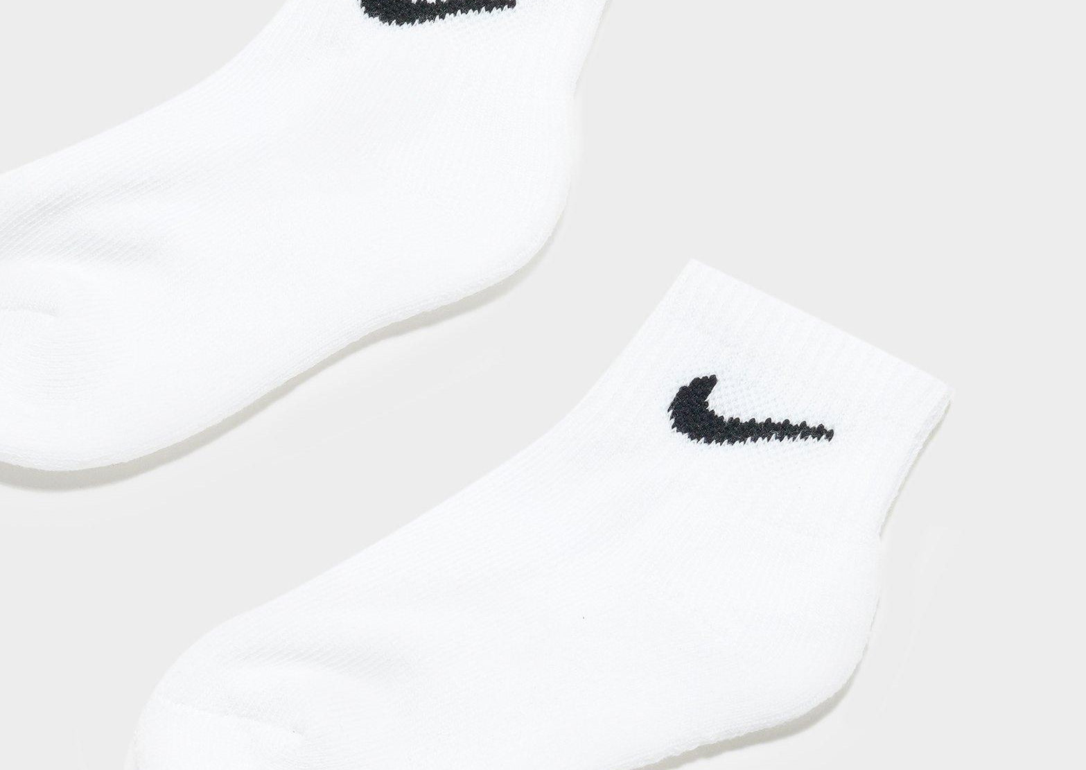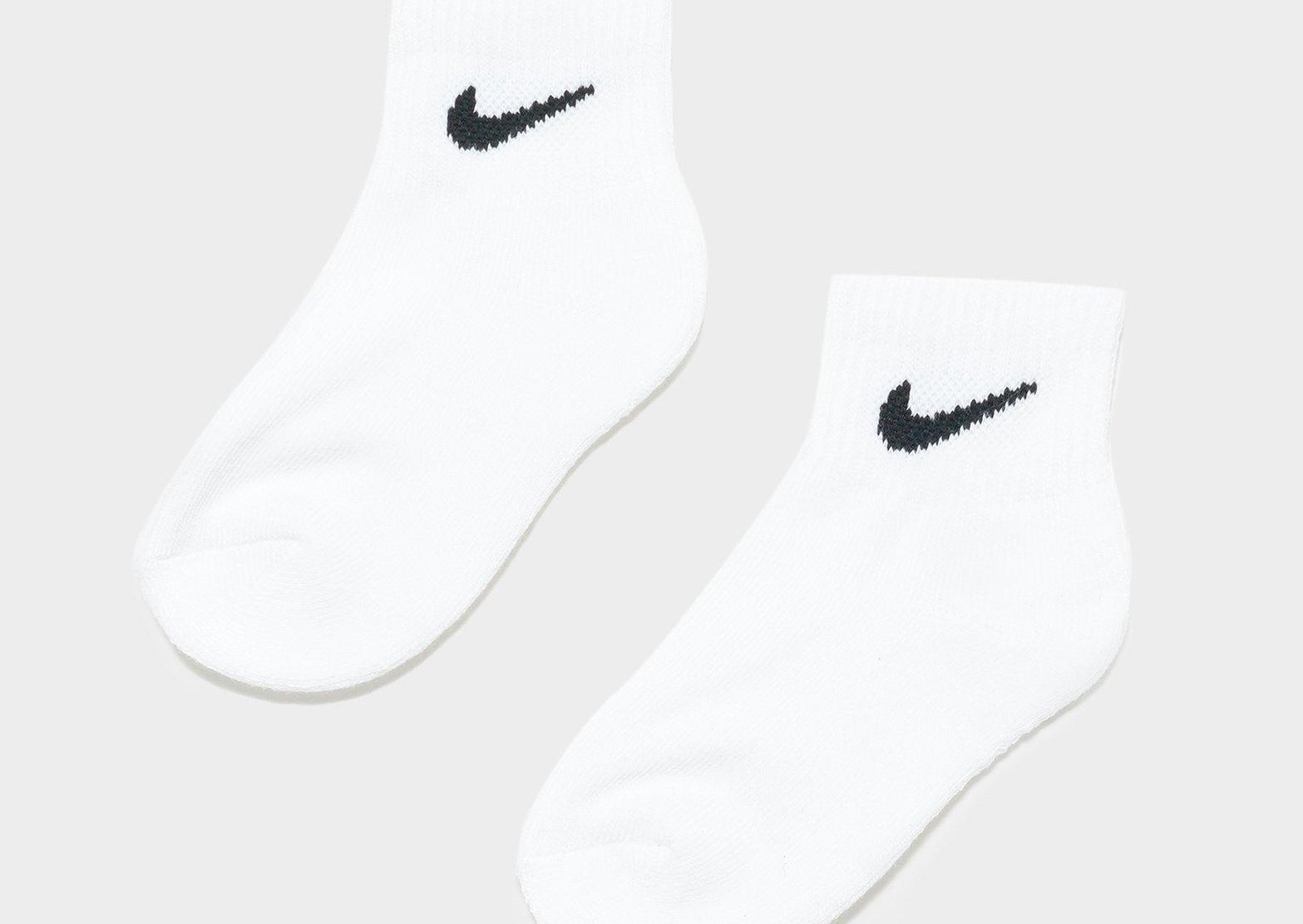 Keep your feet warm and comfy at all times with this 3 Pack of Quarter Socks from Nike. In a white colourway, these socks are made from a soft cotton blend that brings cushioning and a cosy fit. With ribbed detailing to the ankle, these cut for a no-show look socks are finished with black Swoosh branding to the sides.
