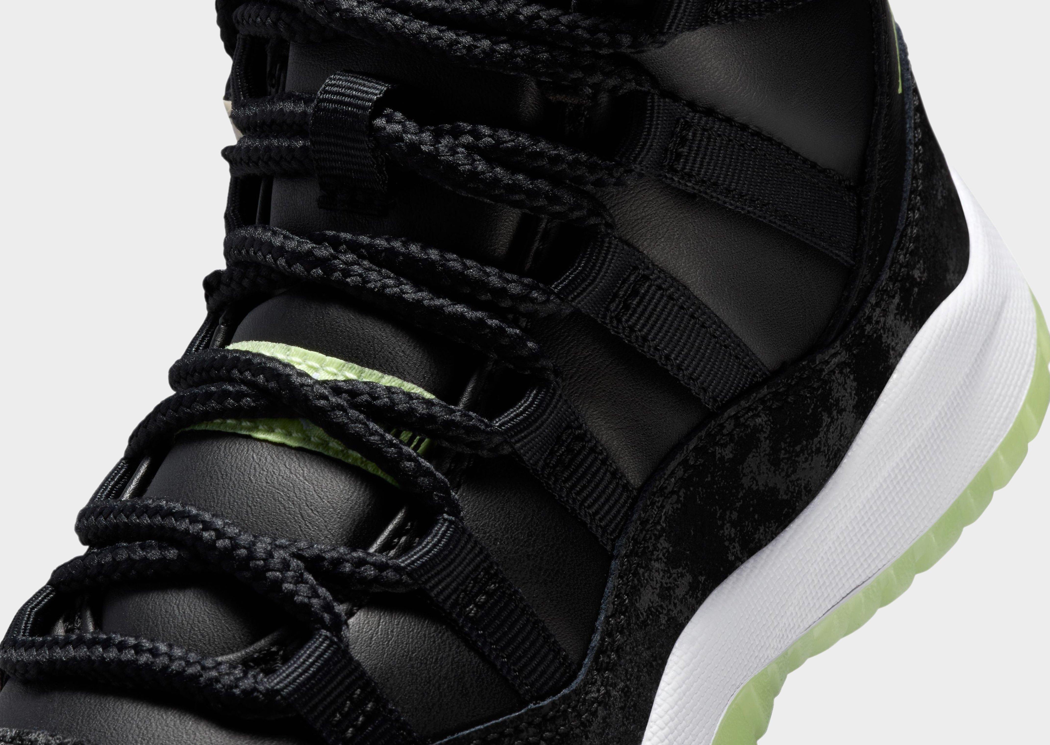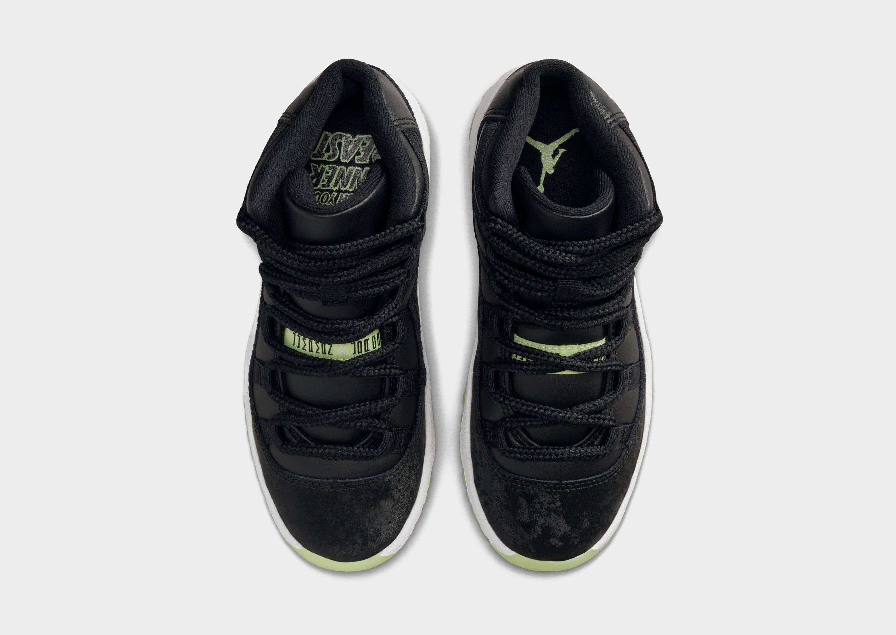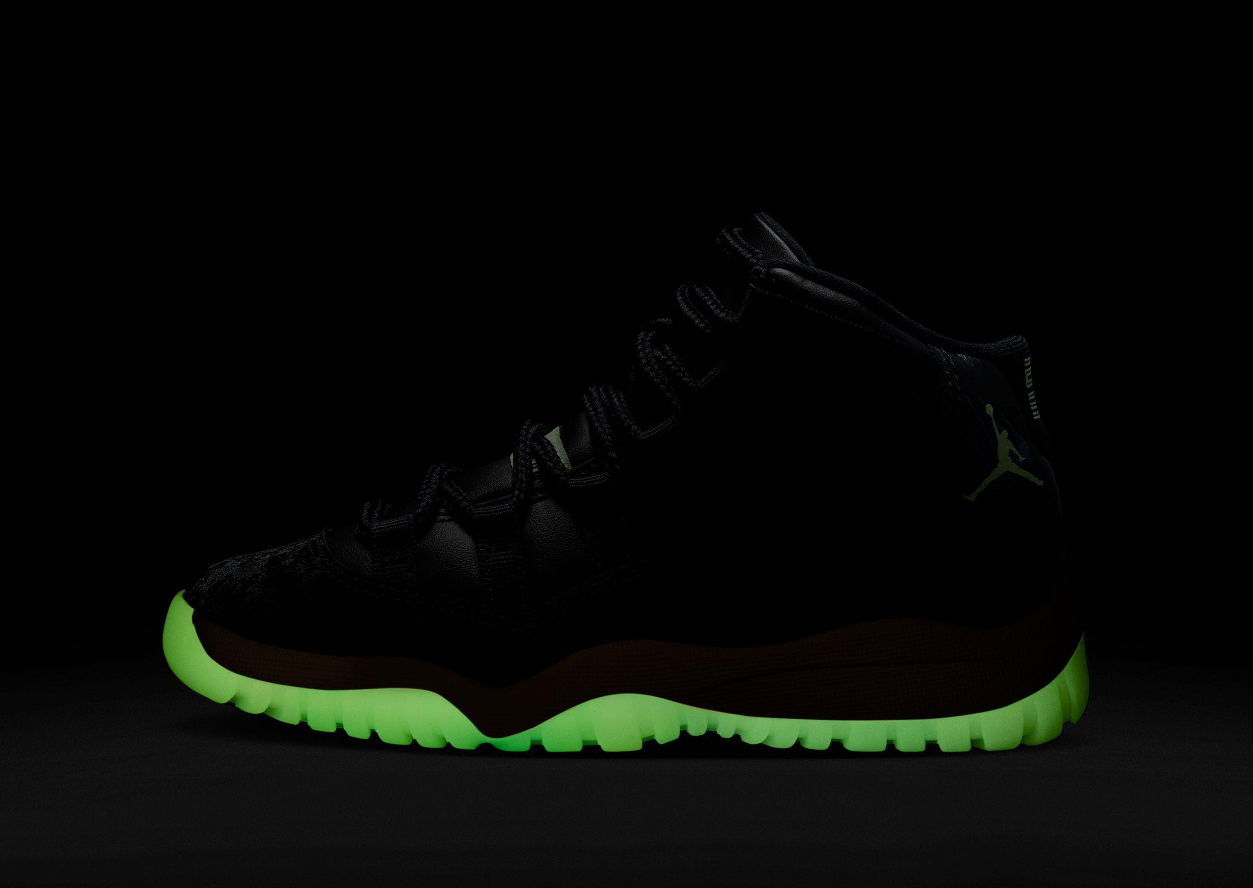 Light up the playground after dark. This edition of the eternally popular AJ11 brings you sleek style with real and synthetic leather, breezy textiles, soft velvet accents and glow-in-the-dark details.