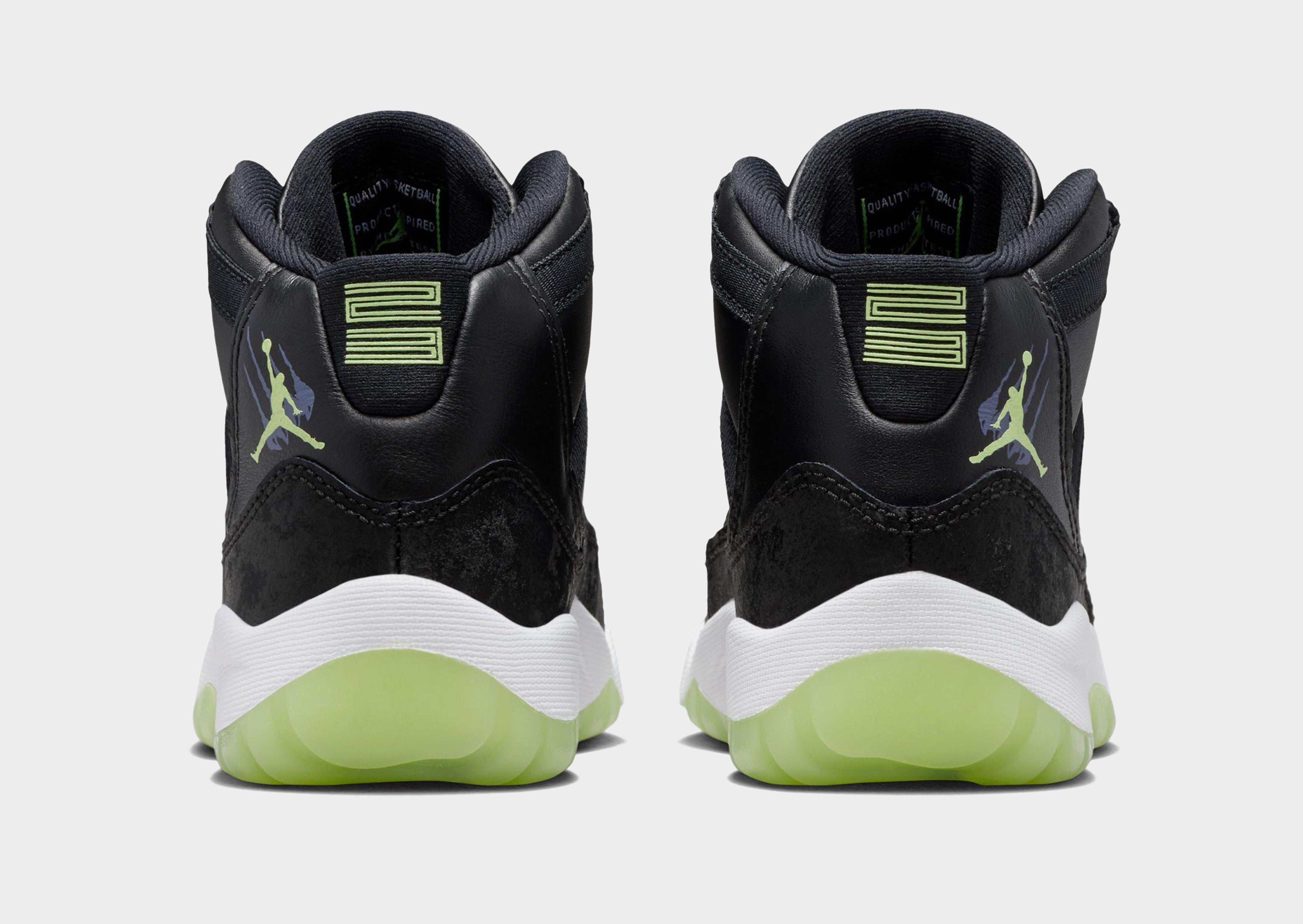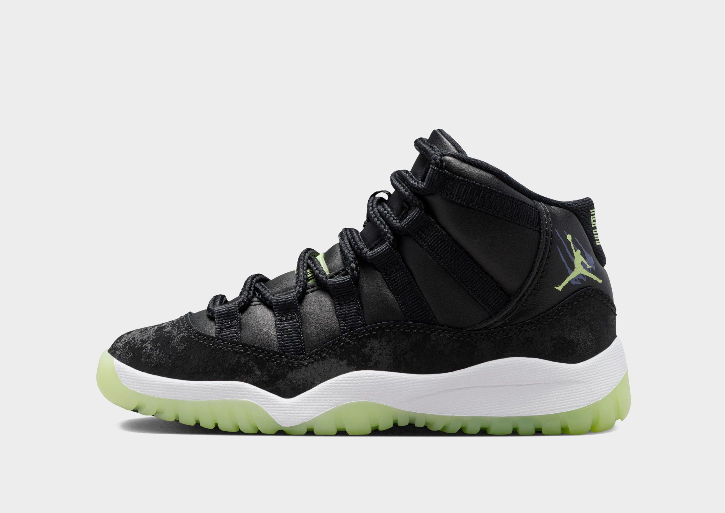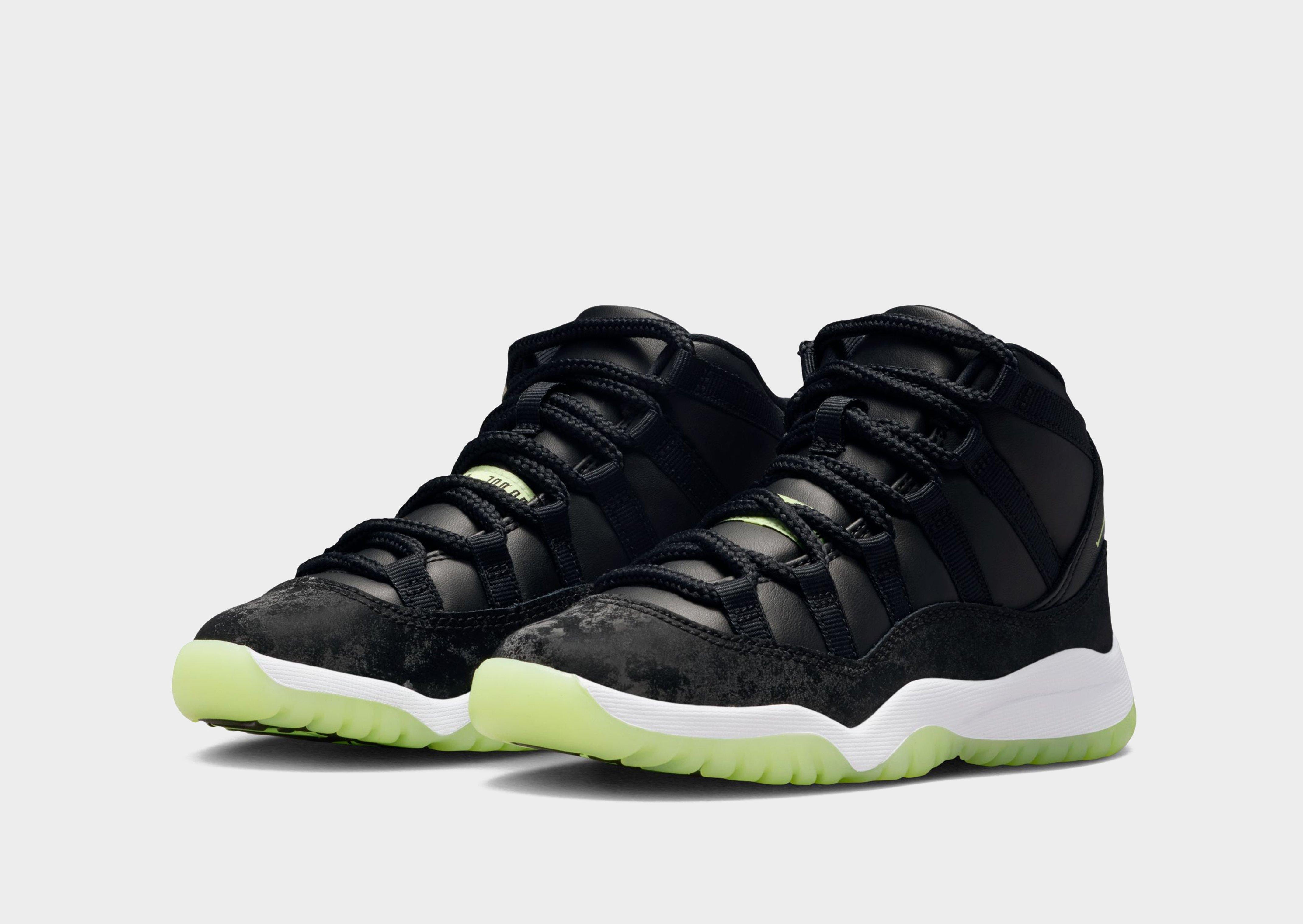 Light up the playground after dark. This edition of the eternally popular AJ11 brings you sleek style with real and synthetic leather, breezy textiles, soft velvet accents and glow-in-the-dark details.