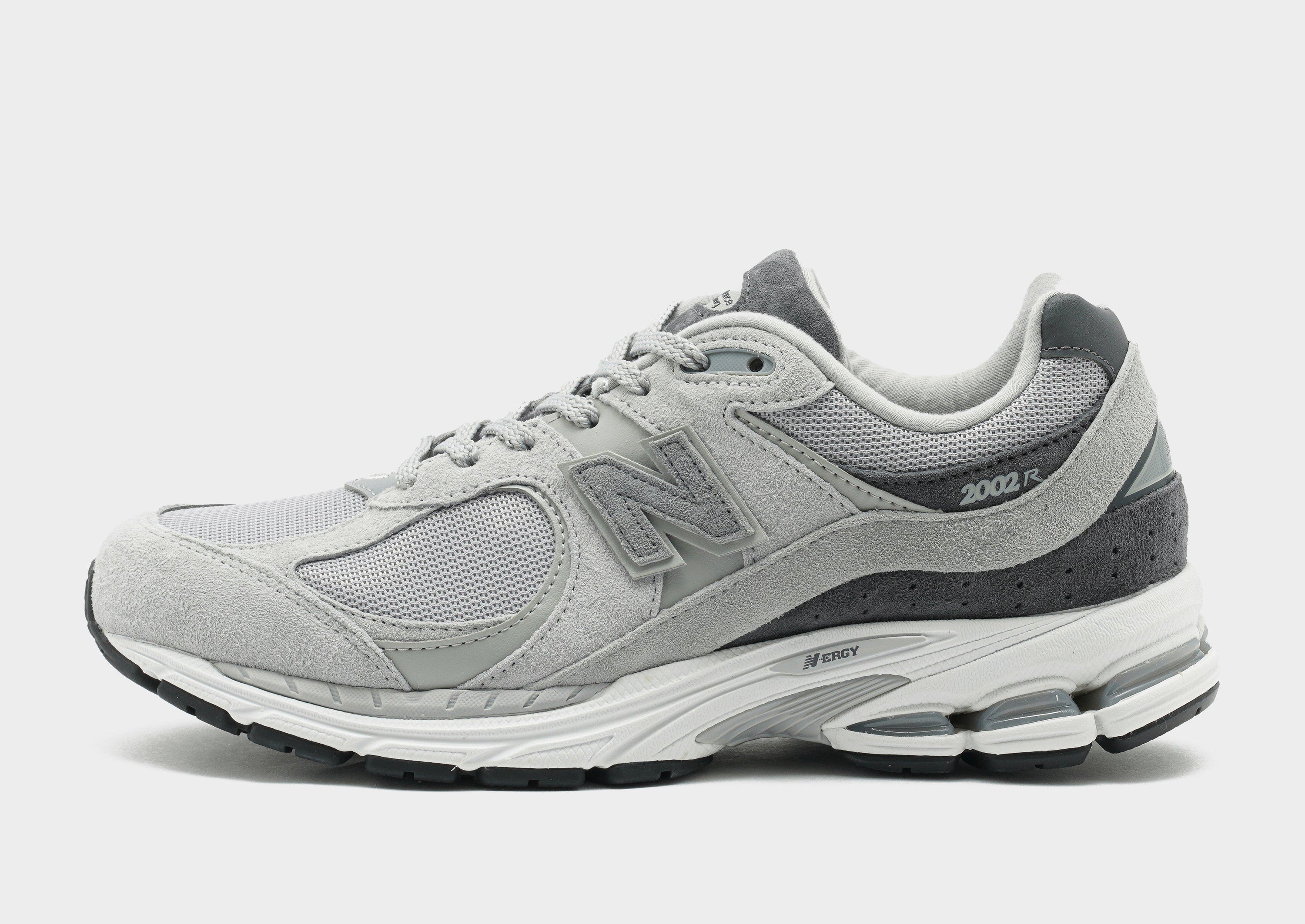 Keep it classic in the streets with these men's 2002R sneakers from New Balance. In a Slate Grey and Concrete colourway, these JD-exclusive sneaks are cut from breathable textile mesh with suede overlays for a durable wear. They feature a lace fastening to lock you in, with a padded collar for added support. Underfoot, they sit on a spongy ABZORB midsole for an ultra-smooth ride, with a grippy N-ergy outsole for total traction. Finished up with signature N branding to the sidewalls.