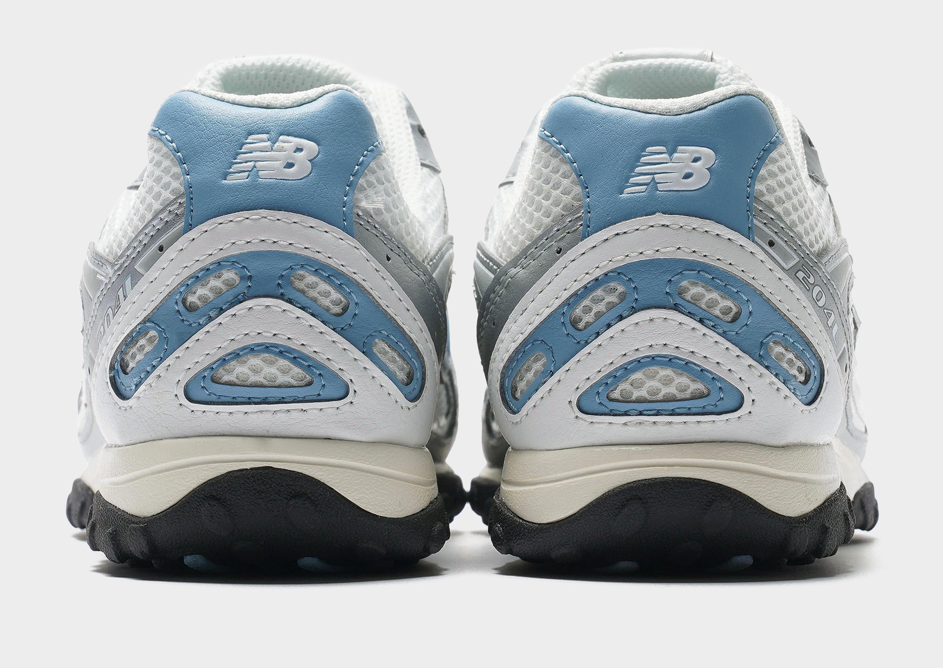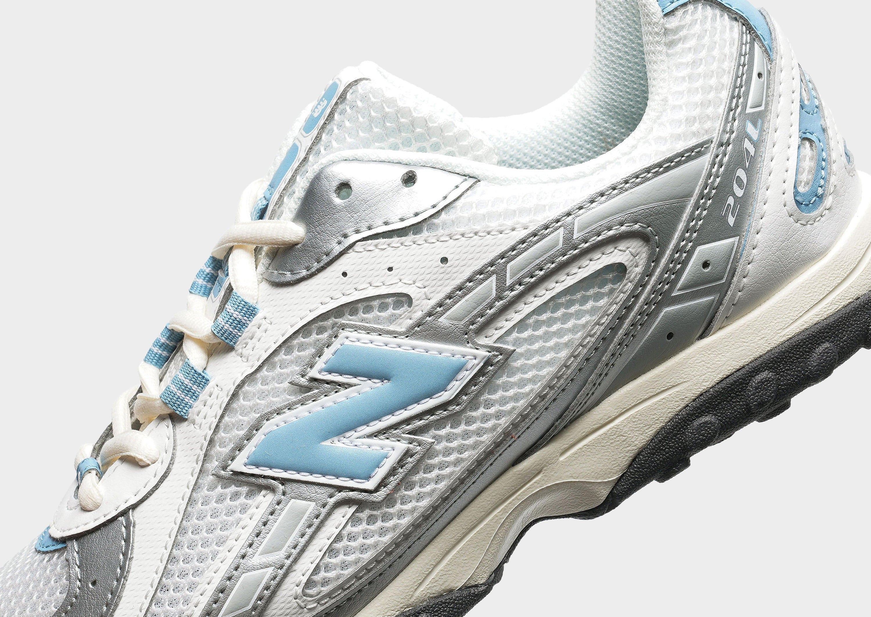 The New Balance 204L in White/Blue blends clean minimalism with tech-runner flair, showcasing a crisp white mesh base layered with bright blue accents and metallic silver overlays for sharp contrast and visual pop. Its slim profile nods to ’70s running shoes with an updated twist, featuring screen-printed graphics along the saddle and a distinctive outsole tread inspired by both vintage and 2000s design cues. Lightweight and grounded, the EVA foam midsole gives a closer-to-the-ground feel while delivering comfort, and the double-stacked “N” logo and reflective details add style and visibility. Perfect for everyday wear, it complements casual outfits with a sporty yet refined edge.