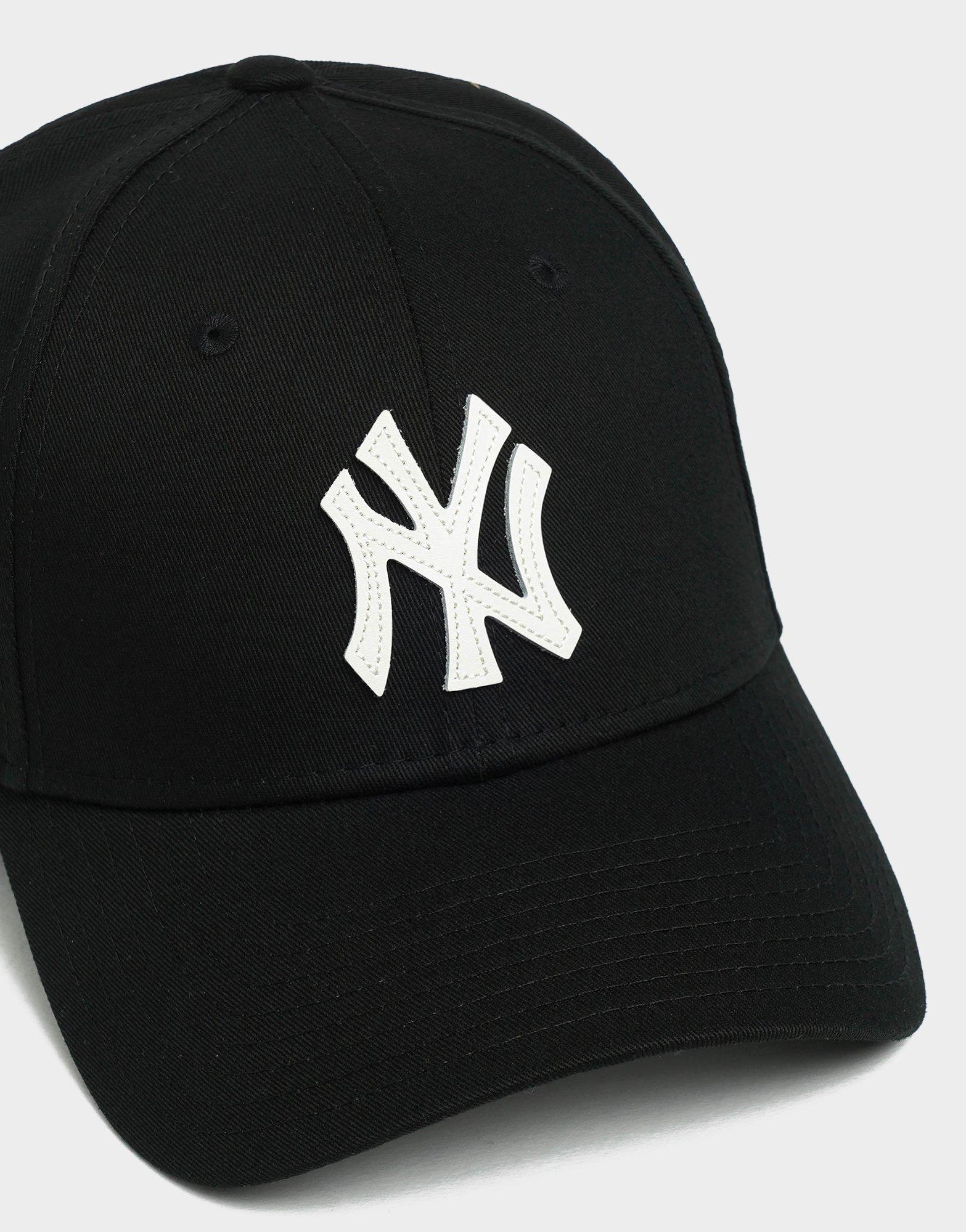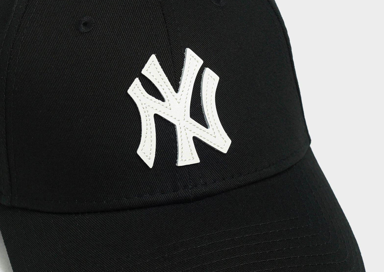 A premium black leather-front edition of the New Era 940 silhouette featuring structured mid-profile crown, curved visor, adjustable snapback closure and bold embroidered New York Yankees logo for a sleek, street-ready finish.
