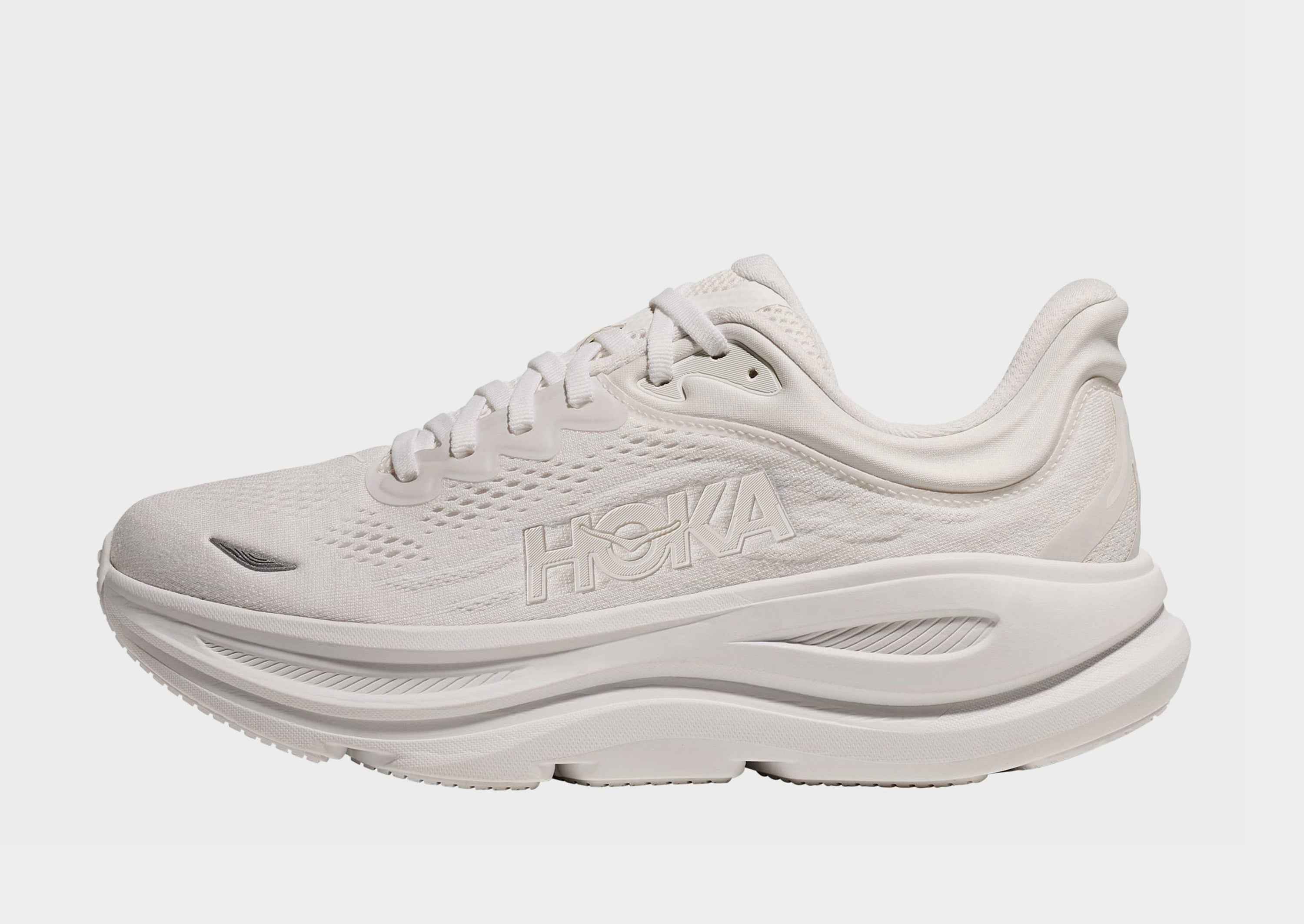 The HOKA Bondi 9 is a highly cushioned running shoe designed for long-distance runners seeking maximum comfort and support. Featuring HOKA's signature oversized midsole, the Bondi 9 offers a plush, smooth ride that absorbs shock and provides a soft, responsive feel with each stride. The shoe's breathable engineered mesh upper ensures a secure and comfortable fit while promoting airflow to keep feet cool. A durable rubber outsole enhances traction and grip, making it ideal for both road running and daily wear. With its plush cushioning, stability, and lightweight design, the HOKA Bondi 9 is perfect for runners looking for a high-performance shoe that prioritizes comfort during long runs or all-day wear.
