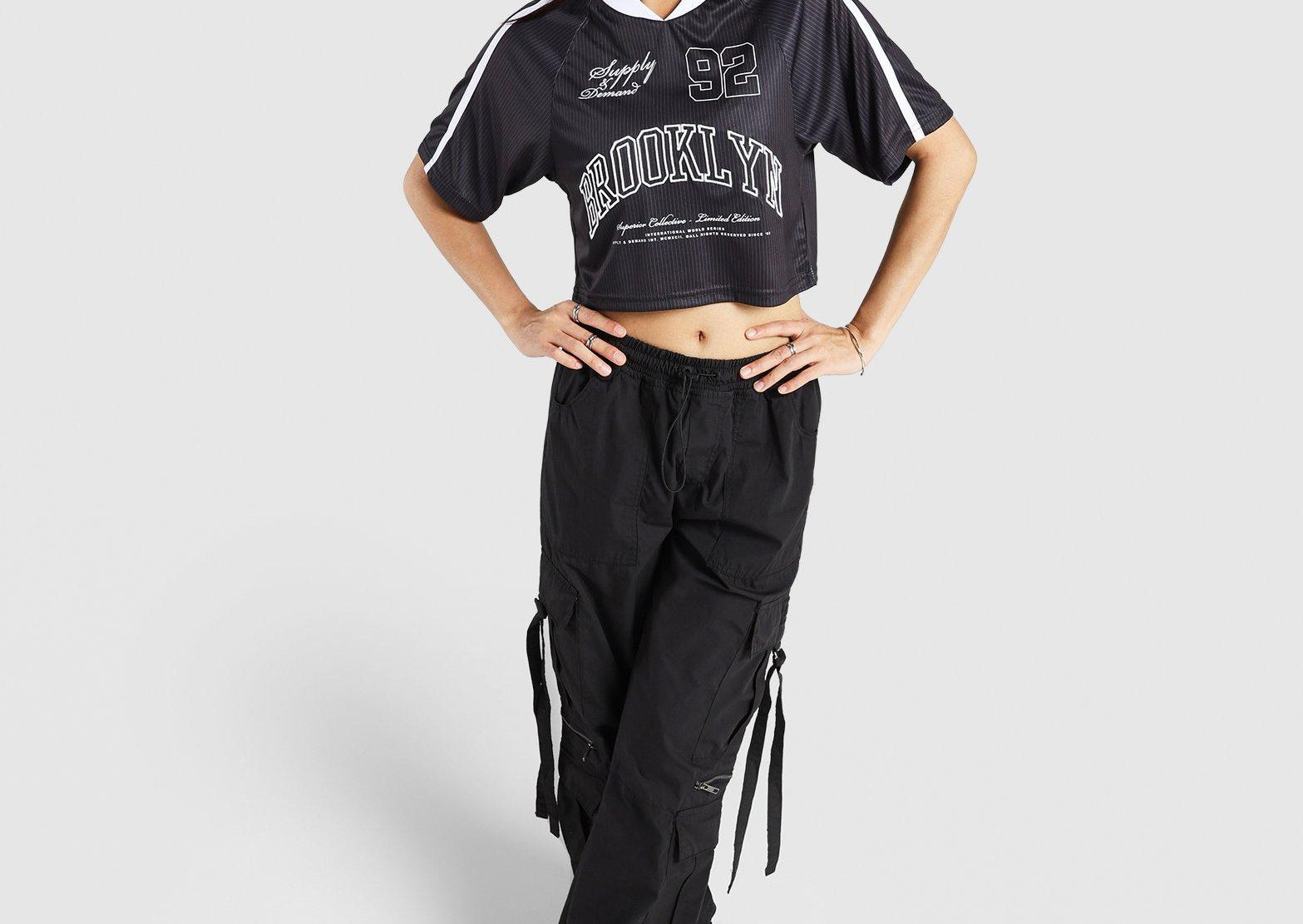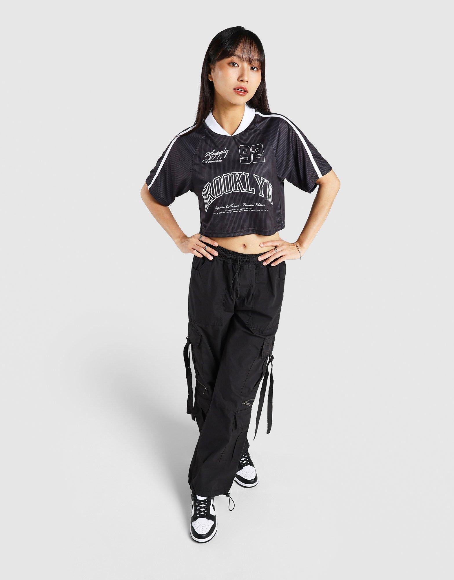 A classic black jersey from Supply & Demand featuring sporty detailing and a relaxed fit, perfect for everyday streetwear style.