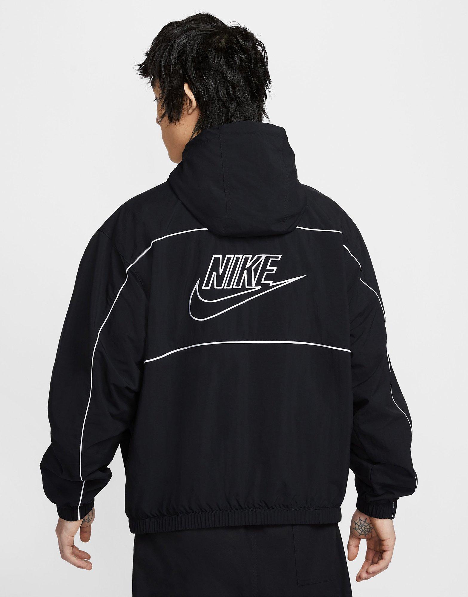 Delivers retro-inspired style with a clean, cool look. Made from lightweight nylon, it offers a roomy fit for easy movement and layering, while a mesh lining enhances breathability to keep you feeling fresh. The double-layer hood adds shape and structure, complemented by elastic openings and handy hand pockets for convenience. Finished with an embroidered Nike Futura logo, this jacket blends classic style with modern functionality.