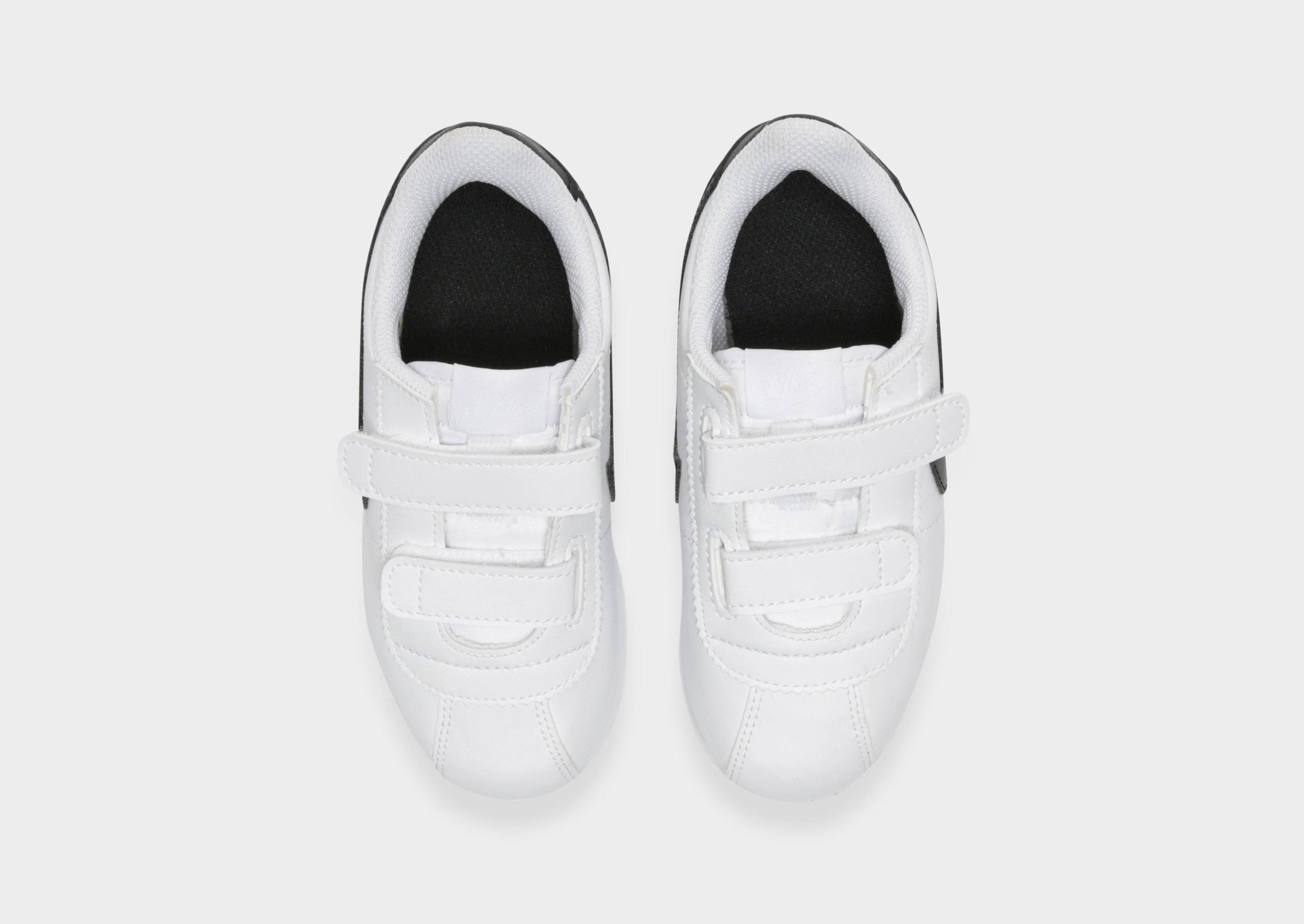 The Nike Cortez Basic for baby and toddler shoes brings the legendary 1972 track shoe design to little feet with kid-friendly features. Designed by Nike cofounder Bill Bowerman, this classic silhouette is made durable and easy to clean with synthetic leather and iconic overlays. Two hook-and-loop straps provide a secure fit and make it simple to put on and take off, perfect for busy little ones. Foam cushioning ensures comfort with every step, while the outsole features a herringbone pattern for reliable traction during playtime. A timeless sneaker legend, now ready for the youngest runners.