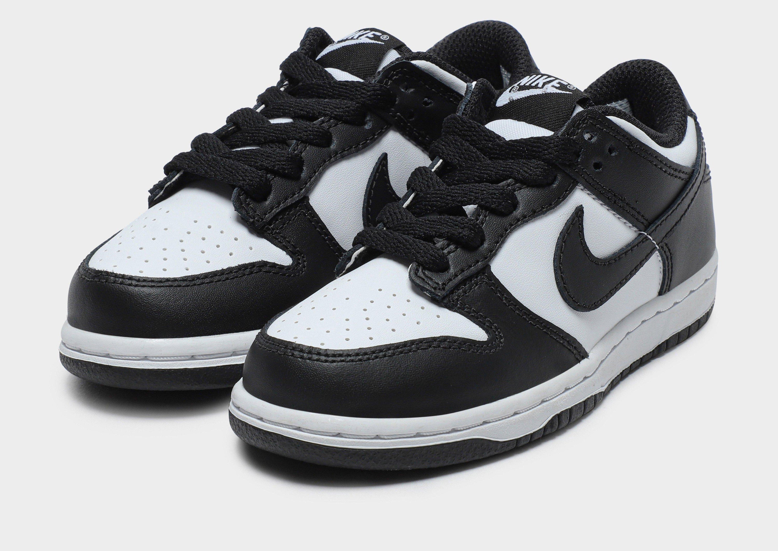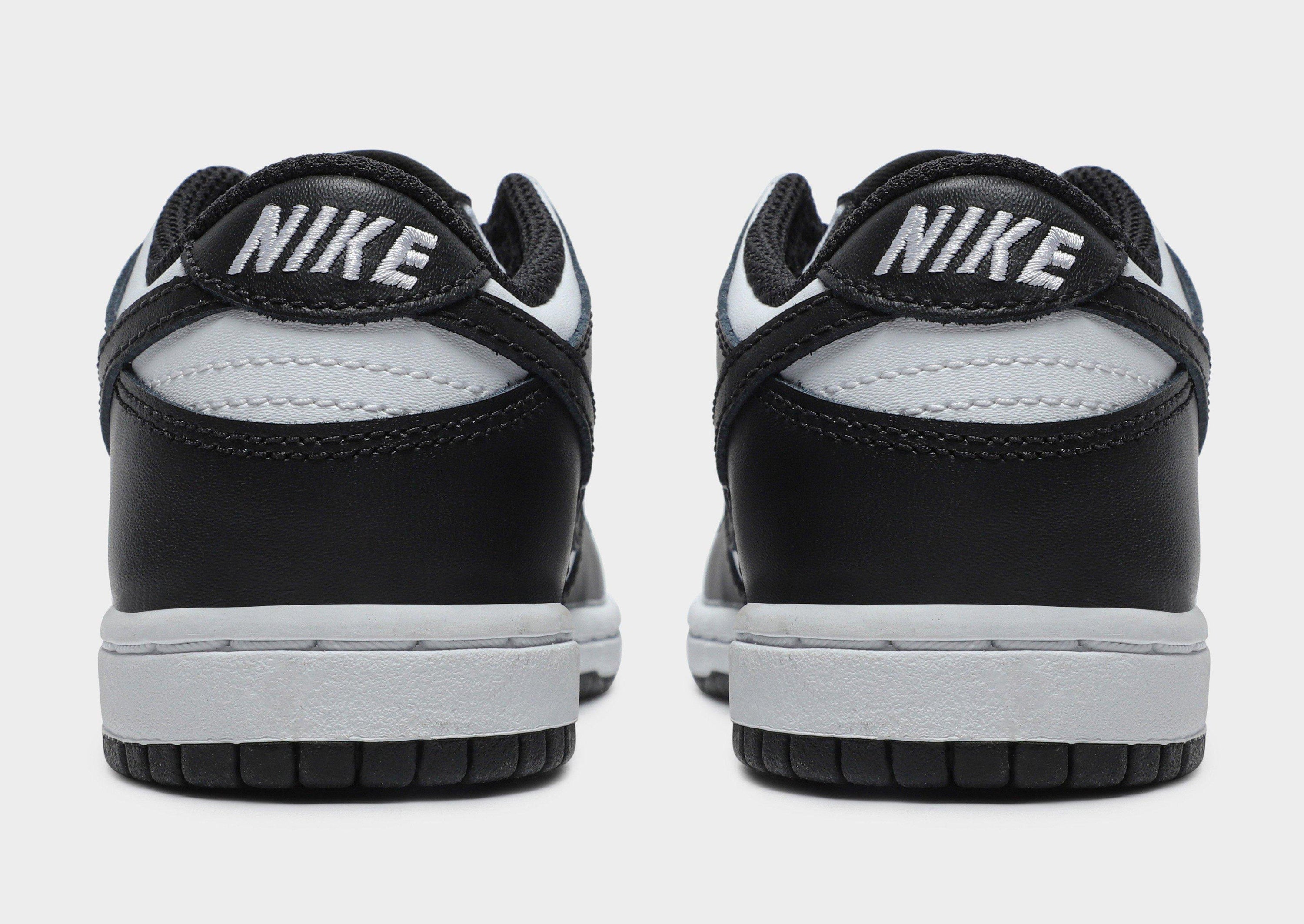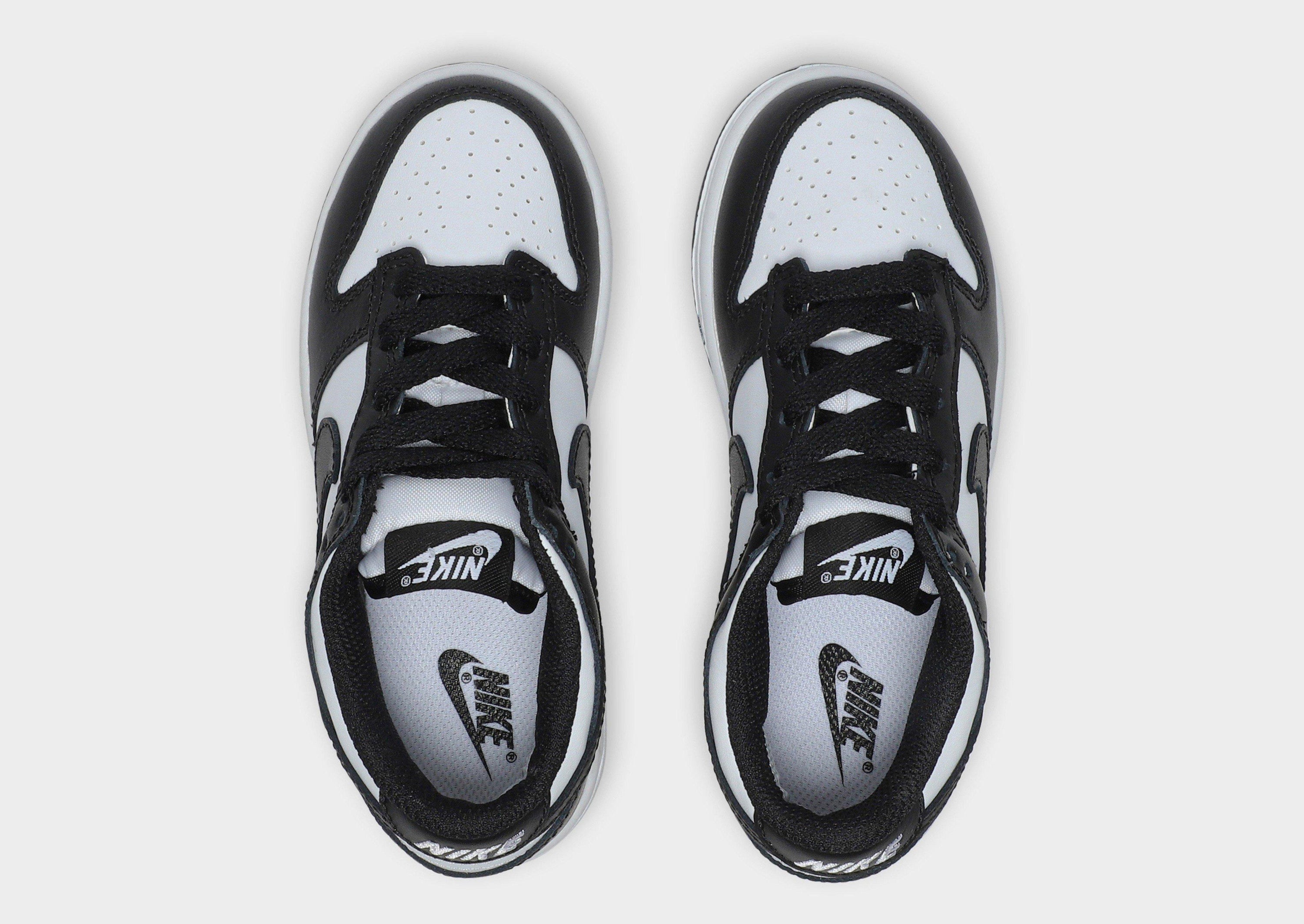 Back from the '80s, get your little one an iconic look with these children's Dunk sneakers from Nike. Inspired by the OG college colourways, these downsized icons have a premium leather upper in a White and Black colourway. They have a low-profile style and feature breathable perforations and a secure lace up fastening. Sat on a monochrome midsole for lightweight cushioning, these sneakers are finished with a grippy rubber tread, signature Nike branding and the iconic Swoosh logo to the sidewalls. Please note: This item is limited to 1 per person.