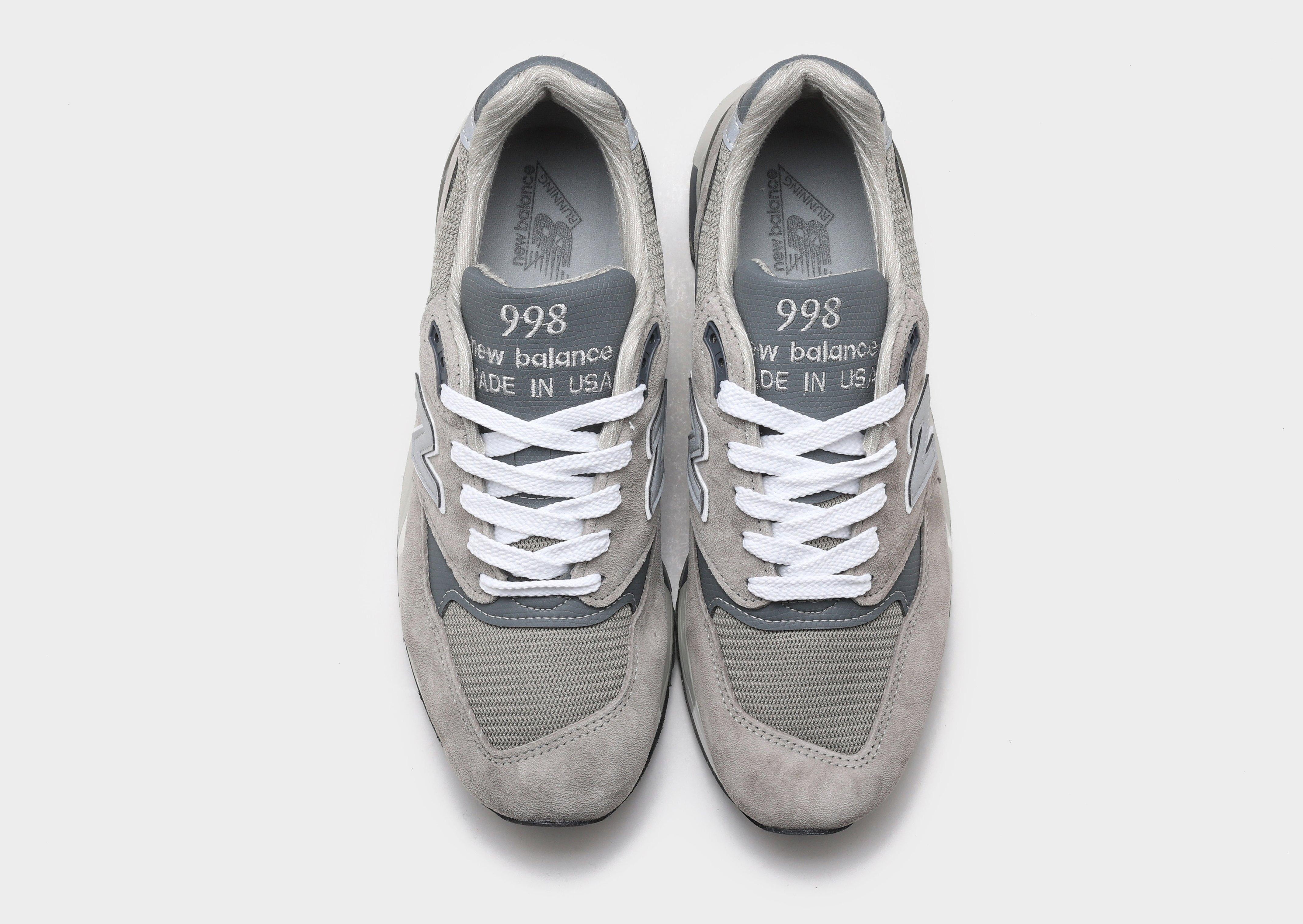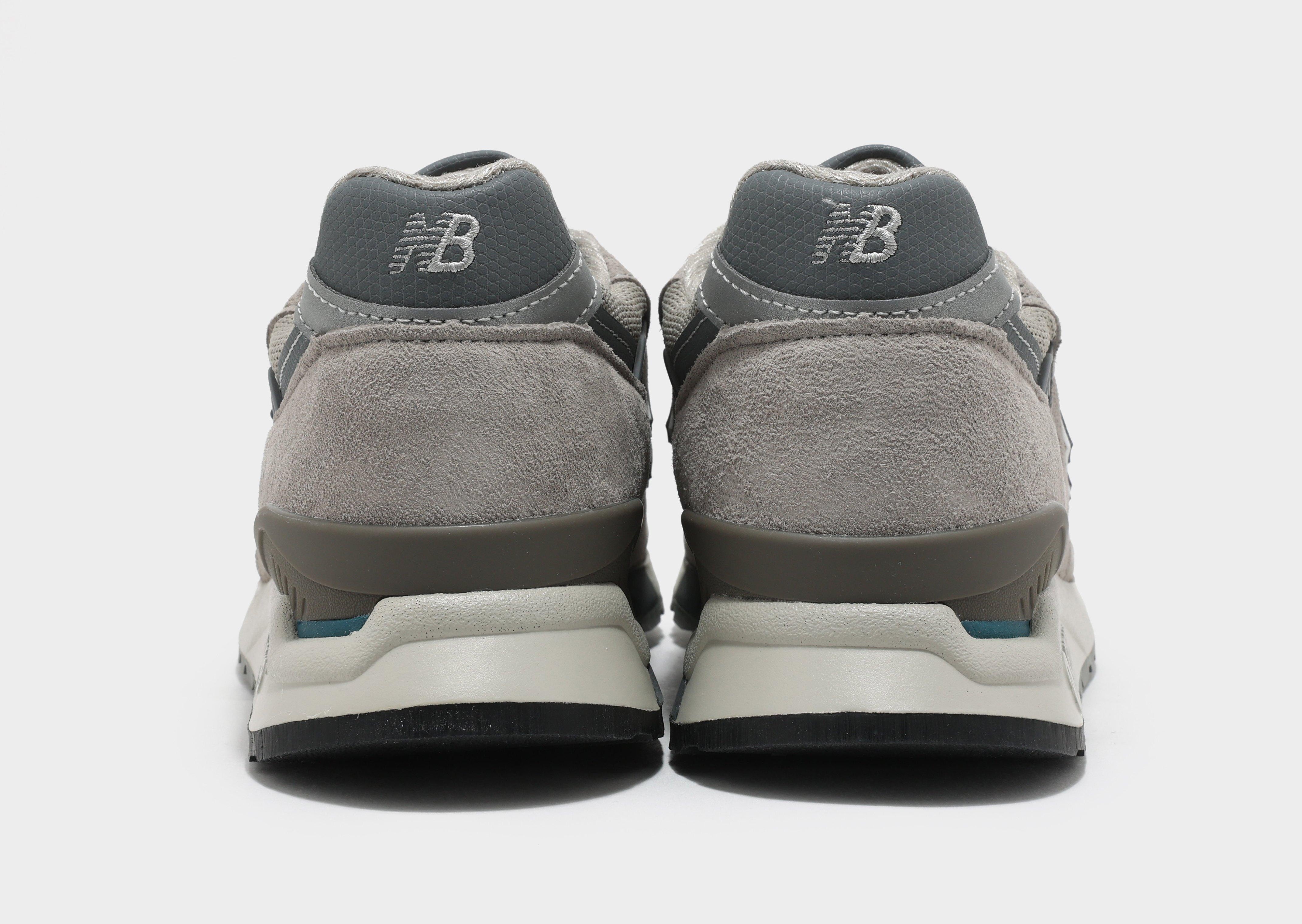 The New Balance MADE in USA 998, reintroduced in 2023, is a true icon of timeless design and performance innovation. First launched in 1993 as the pioneering shoe to feature ABZORB cushioning, it combined advanced shock absorption with a sleek update to the classic 99X series aesthetic. This model showcases a premium OG grey pigskin suede and mesh upper, crafted with high-quality MADE in USA construction. It includes an adjustable lace closure for a customized fit, heritage styling, and a midsole designed to absorb impact through cushioning and compression resistance. New Balance MADE in USA footwear contains at least 70% domestic value, though this line represents a limited portion of the brand’s US sales. Please note, this product contains pigskin material.