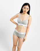 This bralette shapes a natural silhouette with lightly lined cups crafted from breathable cotton-modal fabric, accented by bold logo tapes that reflect the iconic Modern Cotton style. Featuring a global fit, adjustable shoulder straps, an elasticated logo underband, and a convenient back hook-and-eye fastener, it combines comfort with timeless design.