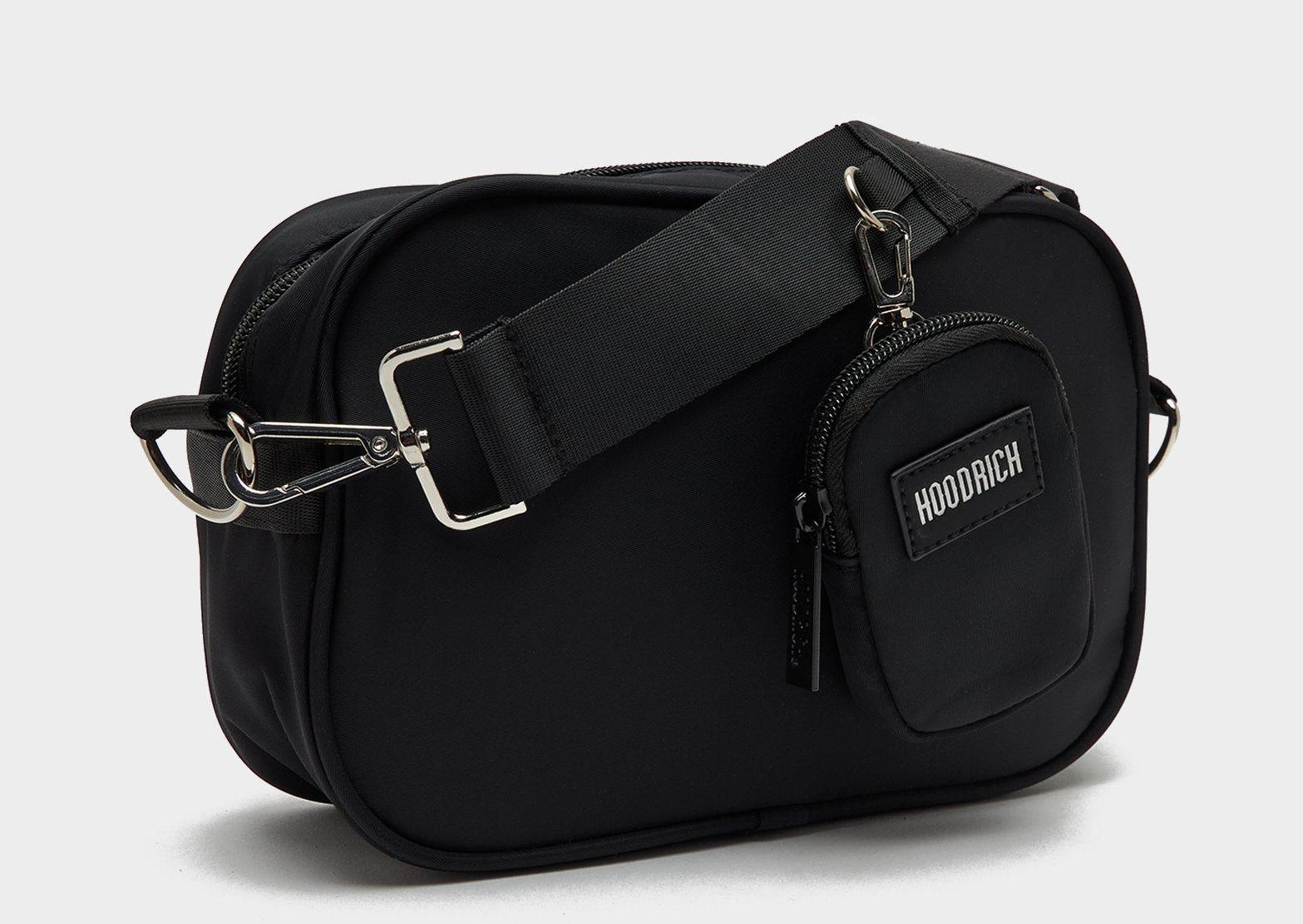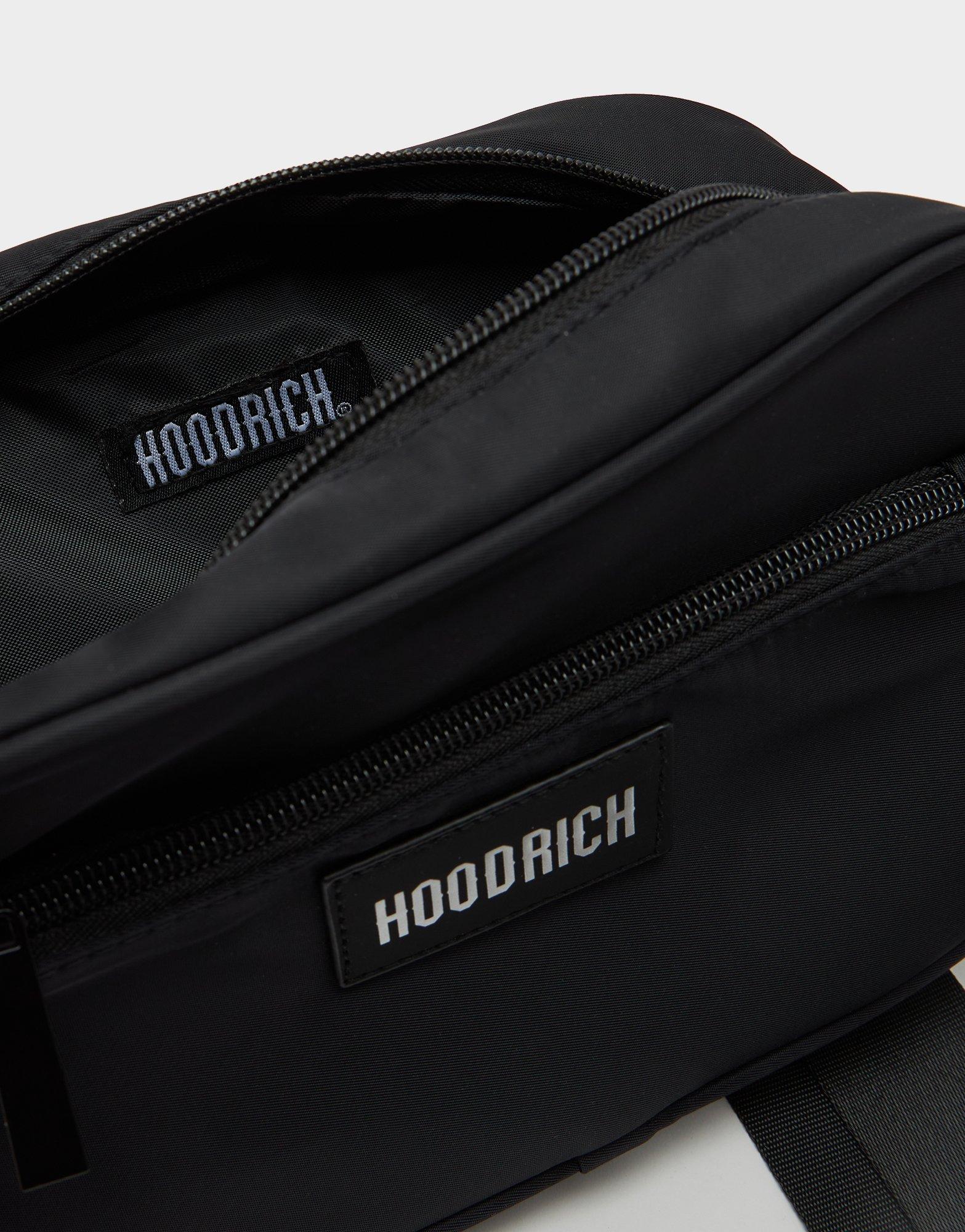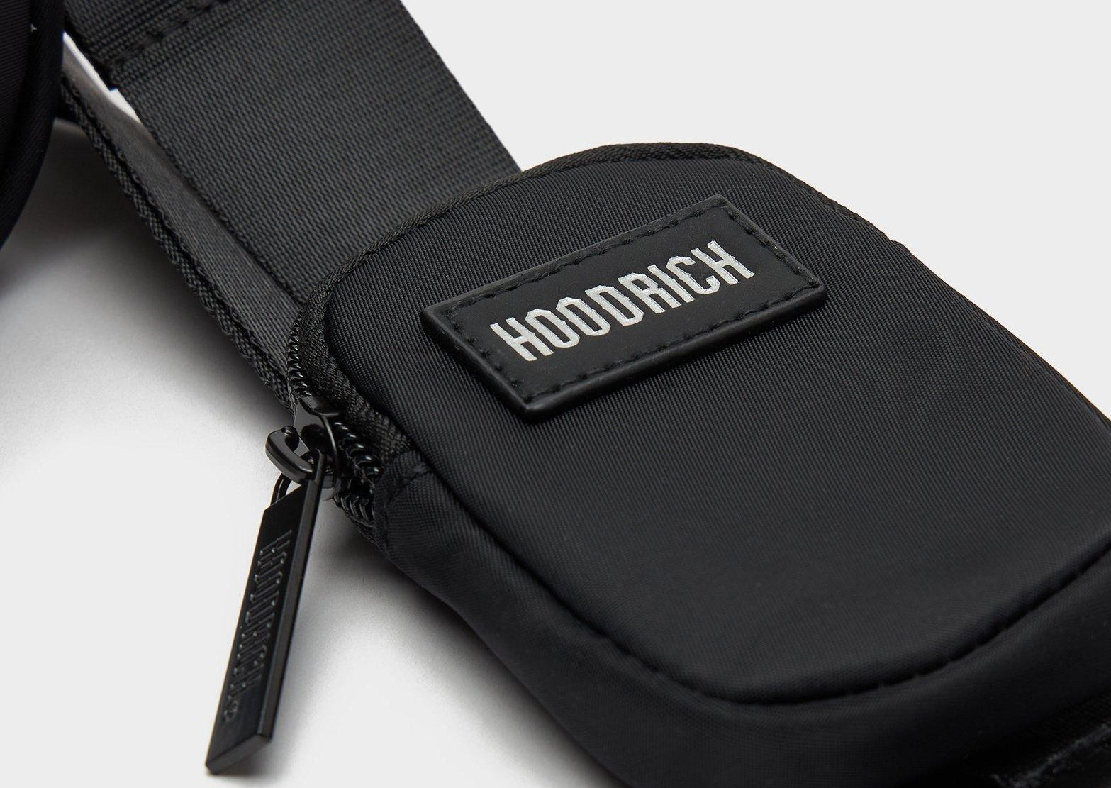 Combines premium style with practical design, featuring a main zipped compartment and a front zipped pocket to keep your essentials organized. It includes an adjustable crossbody strap for a perfect fit and a detachable zipped pouch on the strap for extra storage. Finished in a sleek black colorway with Hoodrich branding throughout.