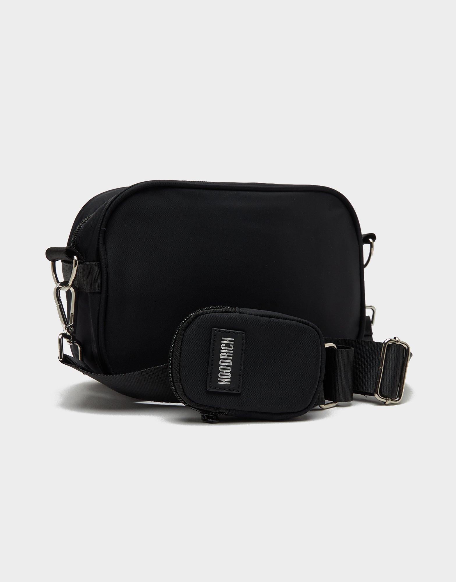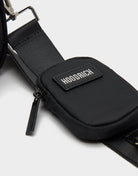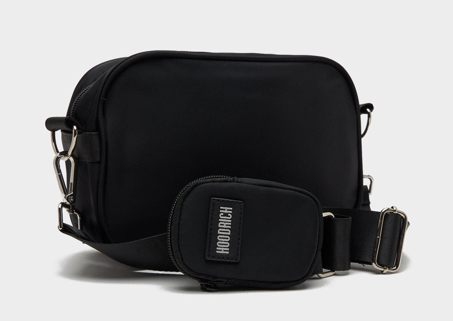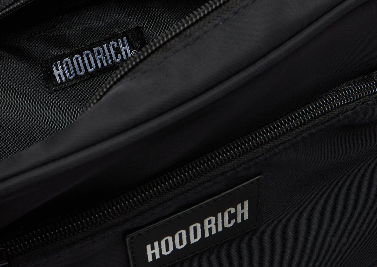 Combines premium style with practical design, featuring a main zipped compartment and a front zipped pocket to keep your essentials organized. It includes an adjustable crossbody strap for a perfect fit and a detachable zipped pouch on the strap for extra storage. Finished in a sleek black colorway with Hoodrich branding throughout.