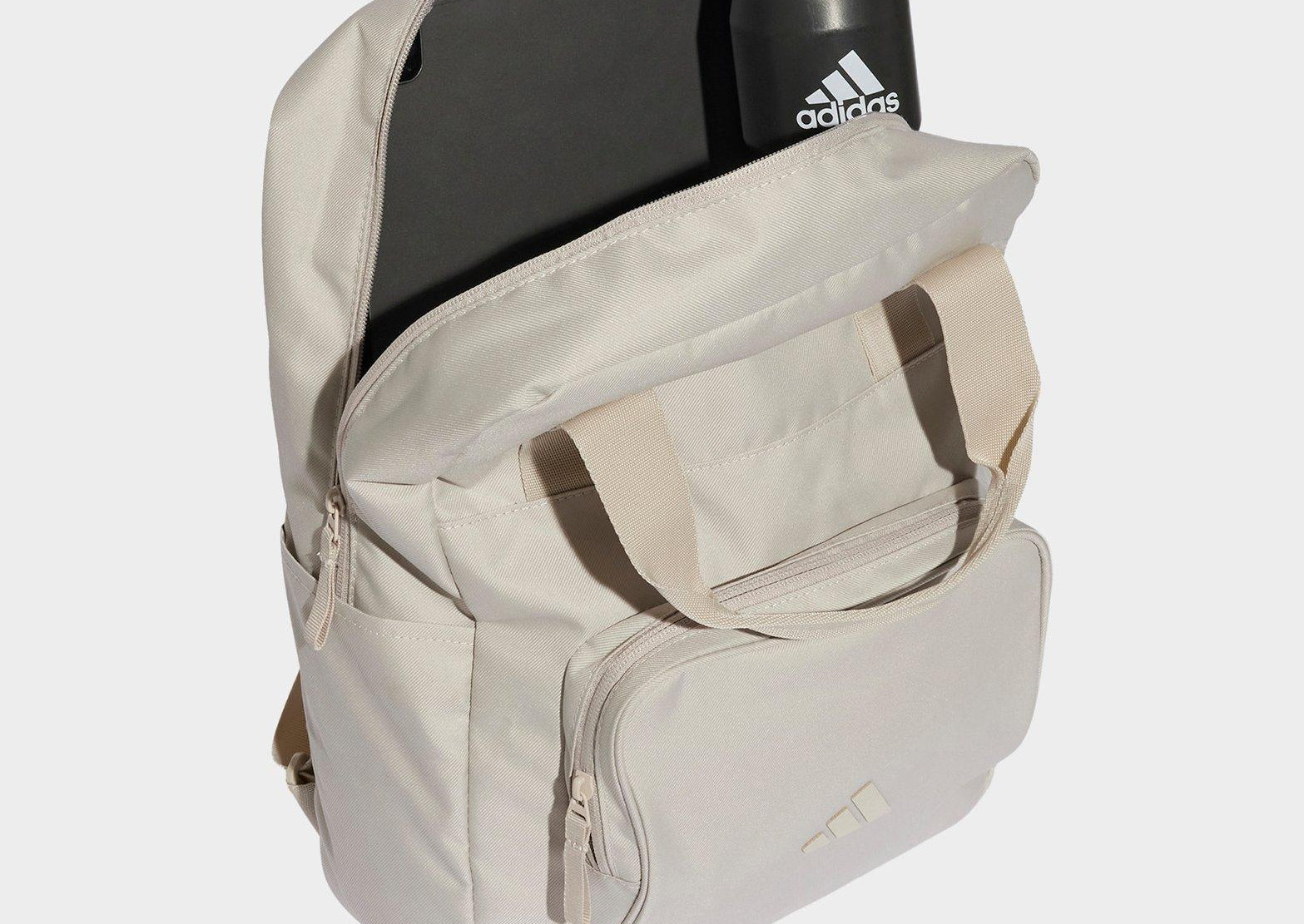 From work to workout, this adidas backpack ensures you're always prepared. The spacious main compartment and multiple pockets keep all your gear organised. Adjustable shoulder straps and additional carry handles mean you can grab it and go however you prefer.