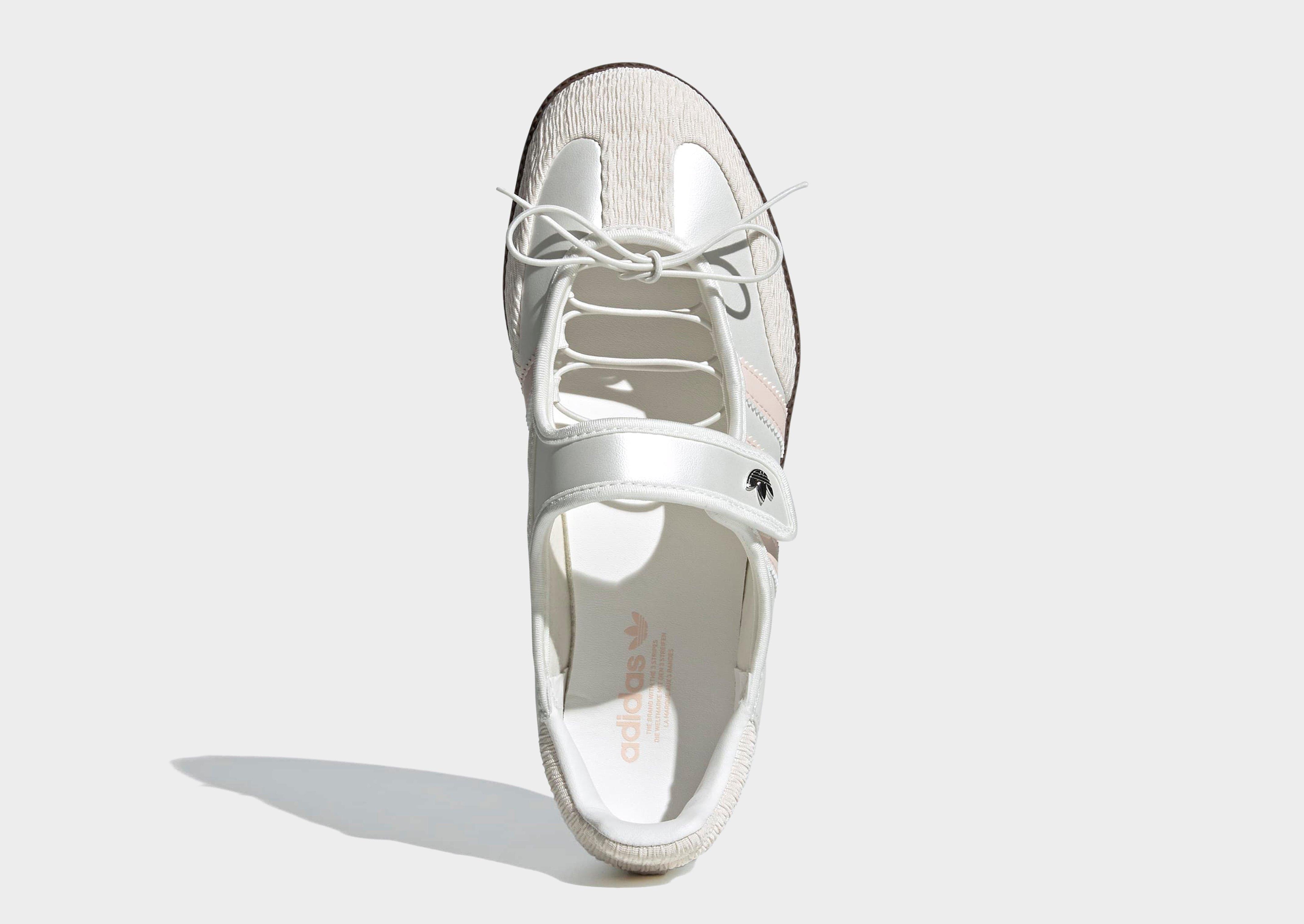 The adidas Samba shoes get a modern makeover, blending into a trendy Mary Jane aesthetic. With a smooth leather upper and signature serrated 3-Stripes, these low-profile shoes offer a fresh take on a heritage style. The smooth satin lining gives the shoes a luxe feel, and a grippy gum rubber outsole keeps the look classic. From indoor trainer to streetwear staple, the Samba's legacy continues to grow. Wear