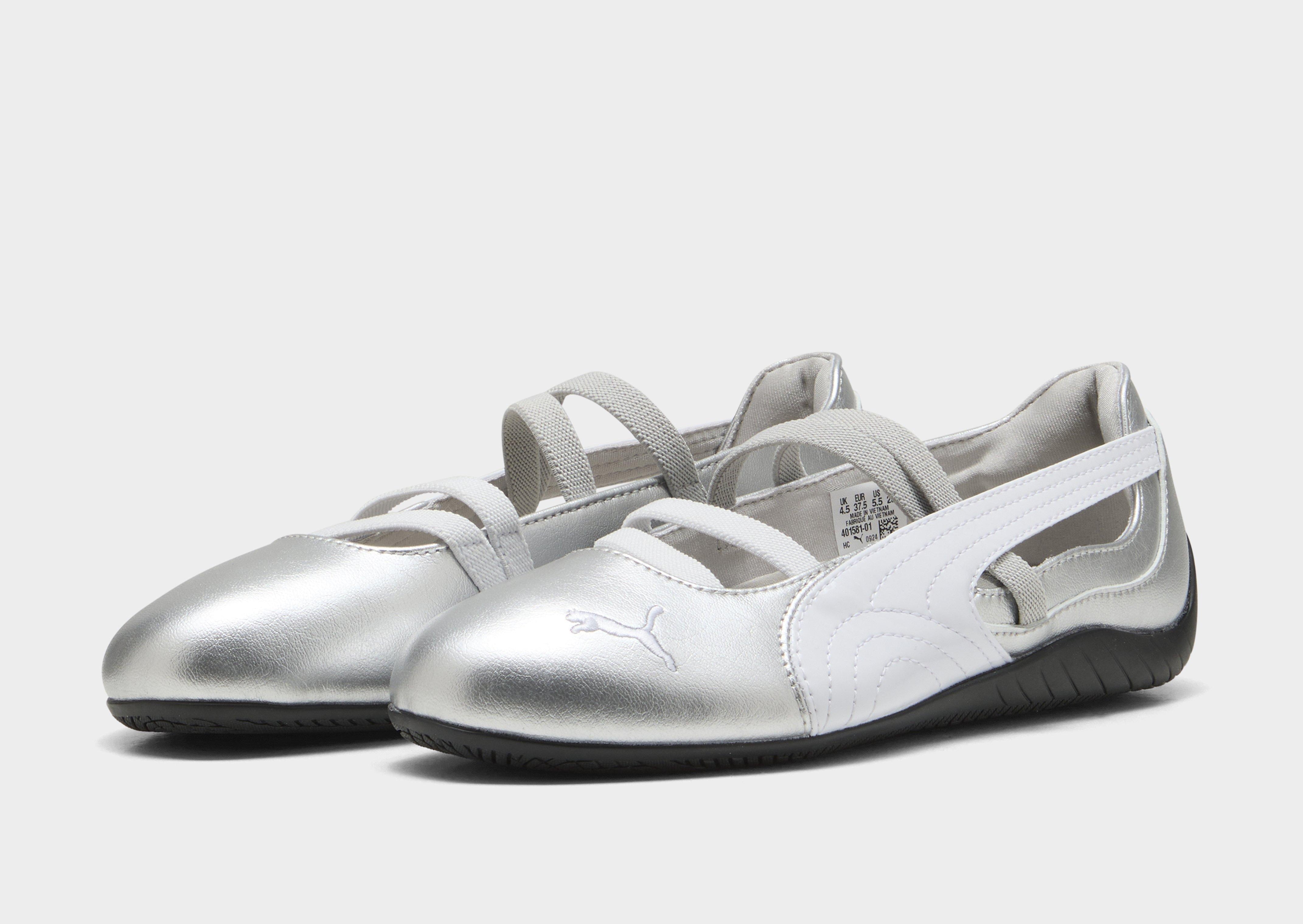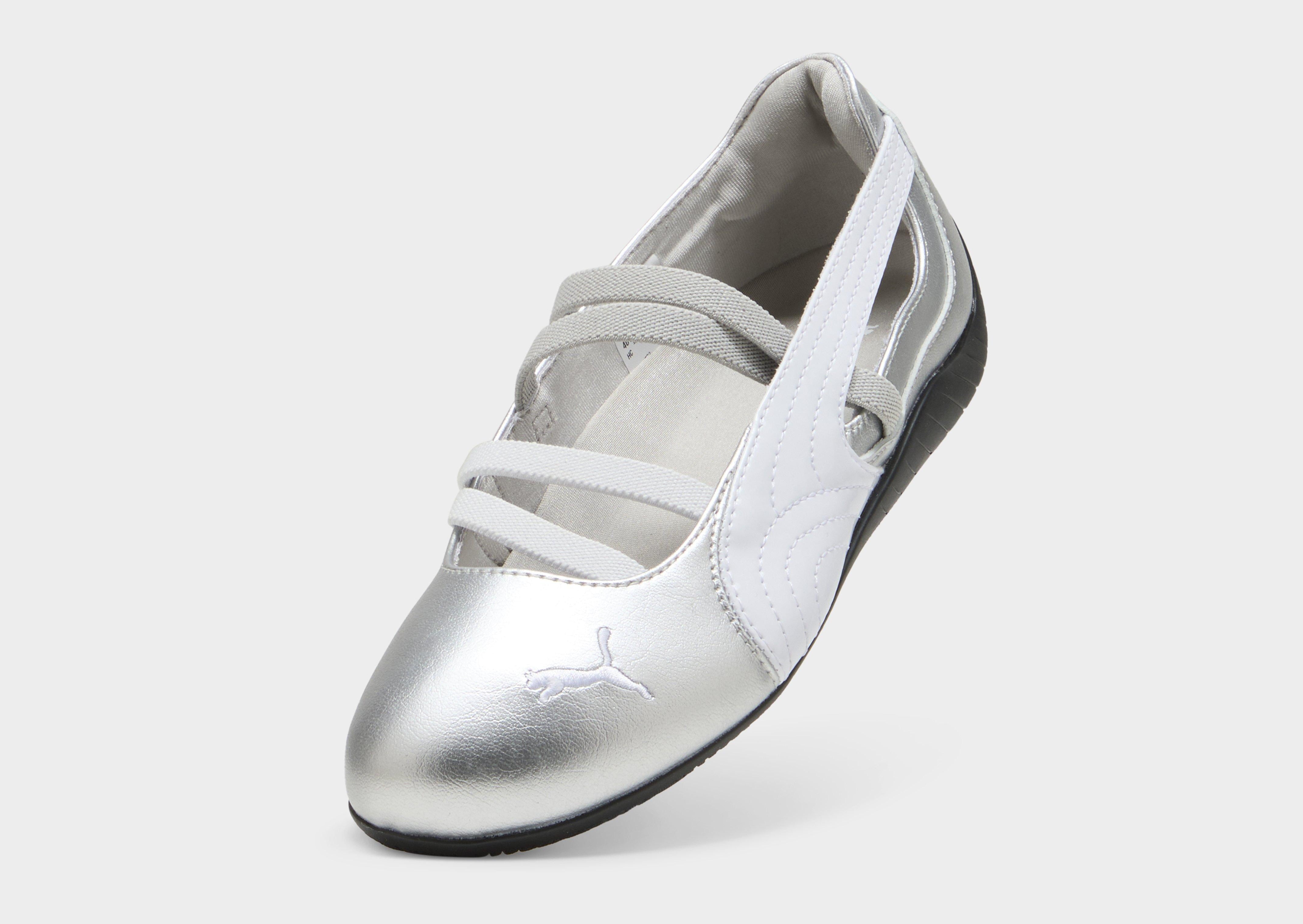 Celebrating over 25 years of racing heritage, the PUMA Speedcat Ballet reimagines an icon once born as fireproof Formula 1® footwear and transforms it for today’s street style scene. Blending ballet-inspired elegance with its original motorsport DNA, this low-profile silhouette features a sleek metallic leather upper, embroidered PUMA Cat detailing, and elastic bands across the instep for a secure, snug fit. Designed in a regular width with a textile lining and durable rubber outsole, it delivers everyday comfort while staying true to its track-born roots. Finished with signature PUMA branding details and crafted from 100% synthetic materials, the Speedcat Ballet is where speed meets modern sophistication.