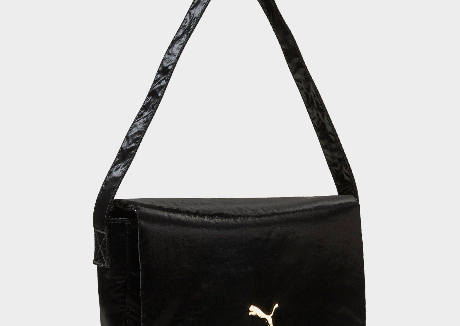 Crafted with a sleek, compact silhouette, this PUMA UP Baguette Bag in black with a metallic gold logo offers a blend of sporty‑luxury style and everyday practicality. It features a flap‑over closure with a magnetic snap for quick access, an interior zip pocket for securing small essentials, and a refined shoulder strap that lets you wear it comfortably over the shoulder or cross‑body. The embossed 150D polyester lining and at least 50% recycled materials build add a conscious touch, while the dimensions (approx. W 23.5 cm × D 5.5 cm × H 14 cm, volume ≈ 1.5 L) make it ideal for on‑the‑go use when you want a sleek bag that holds the essentials without bulk.